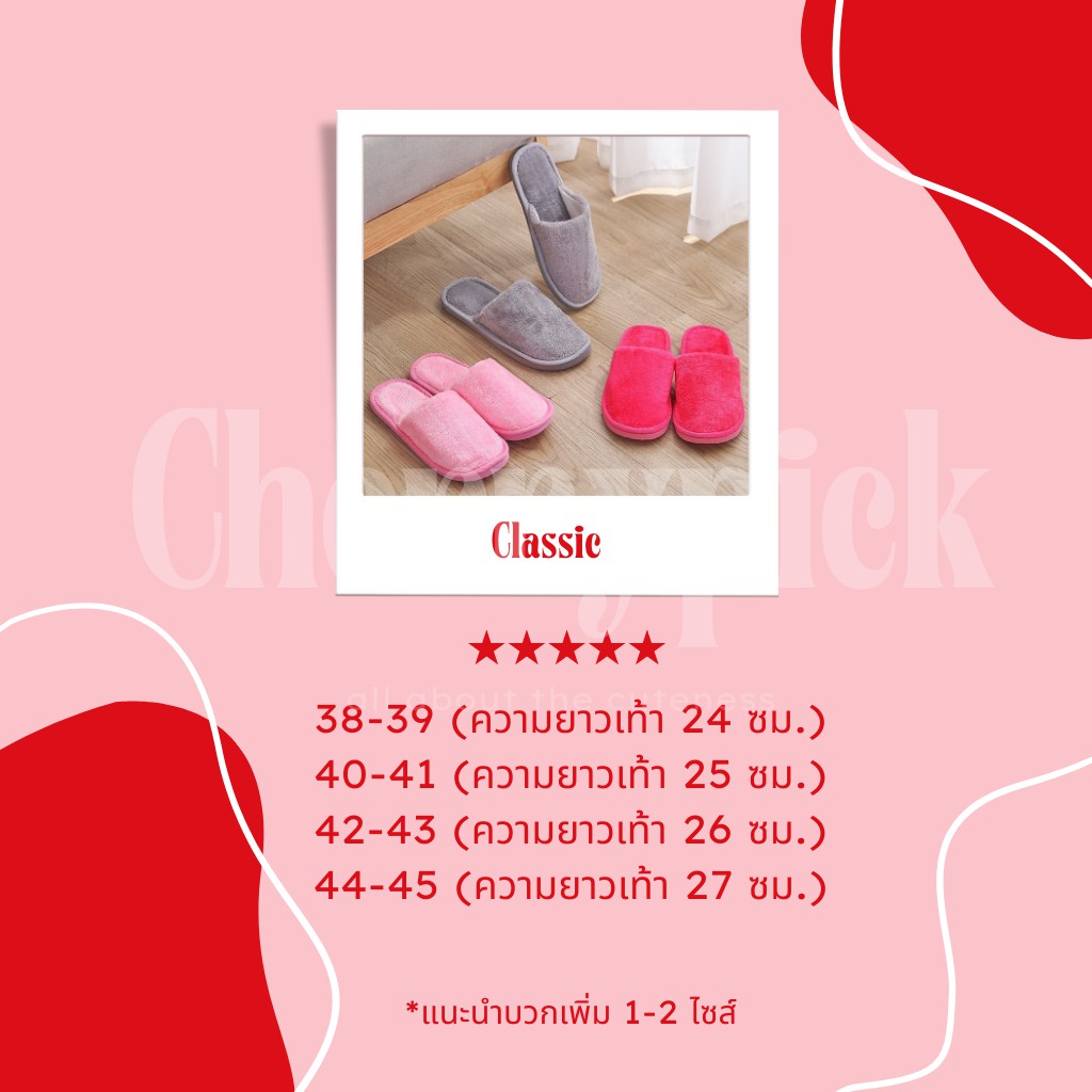 [🔥พร้อมส่ง🔥] รองเท้าใส่ในบ้าน รุ่น Classic **บวกเพิ่ม 1-2 ไซส์** น้ำหนักเบา พื้นยางกันน้ำลื่น สลิปเปอร์ slipper