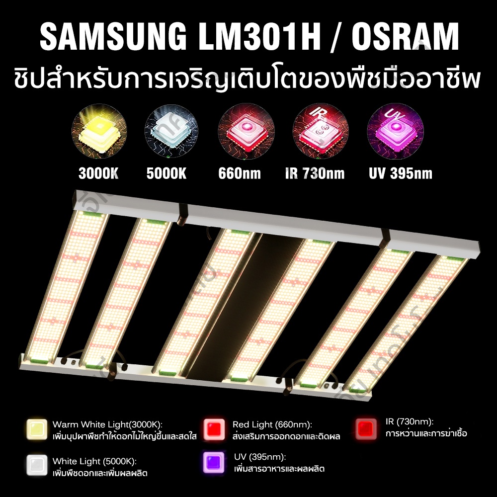 ไฟปลูกต้นไม้ Full Spectrum SAMSUNG LM301H Grow Light 480W 720W 1000W 1280W สำหรับการเจริญเติบโตของผัก ผลไม้ และต้นไม้