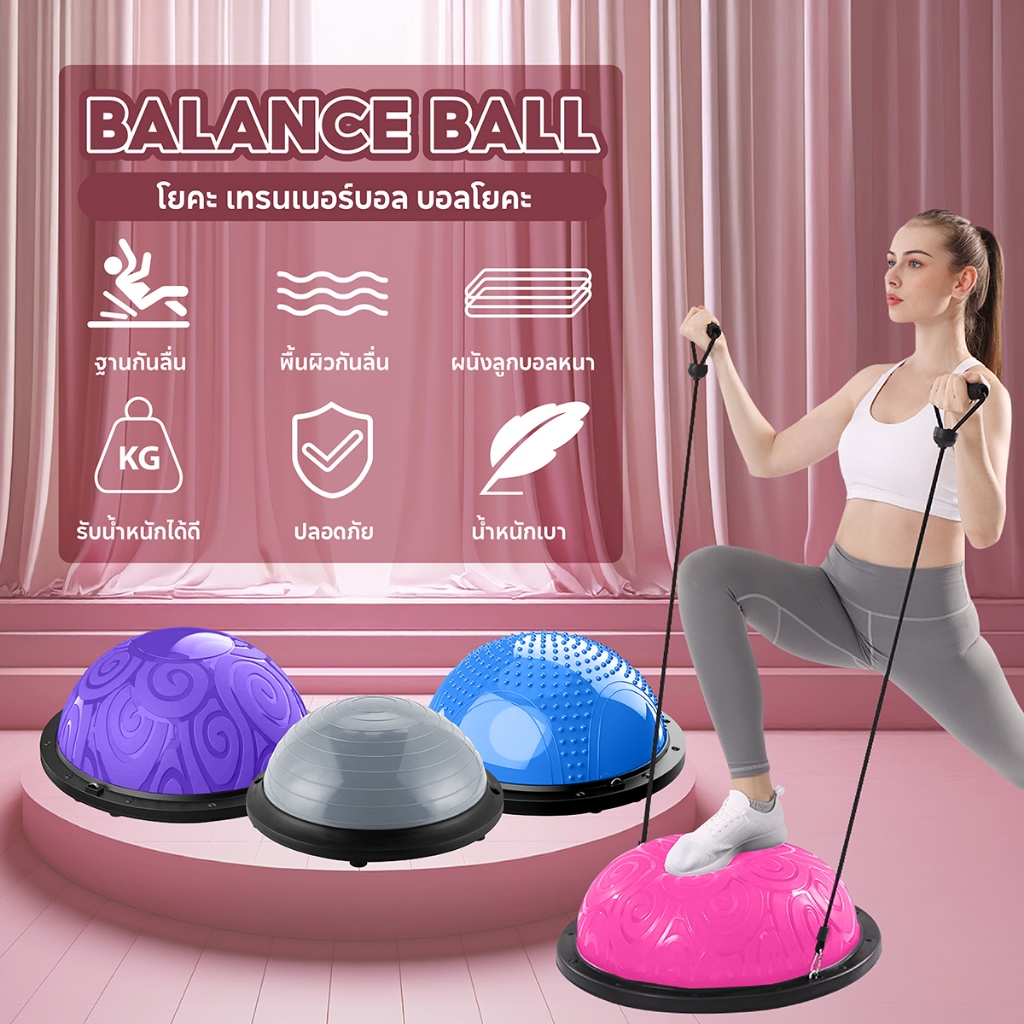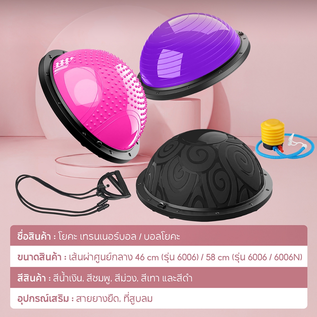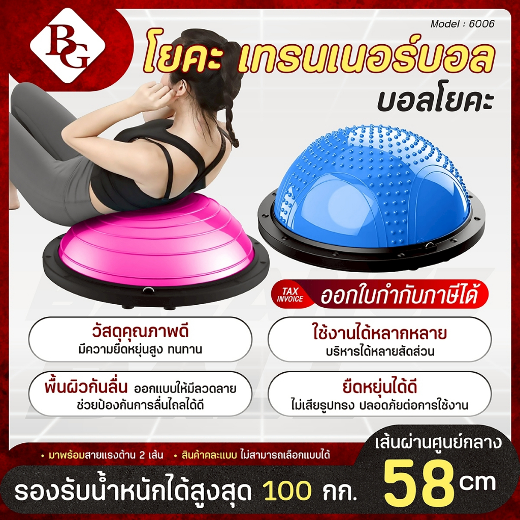 ฟรีที่สูบลม BG Bosu Ball ลูกบอลครึ่งวง ขนาด 58 CM รุ่น 6006 คละแบบ โยคะ เทรนเนอร์บอล บอลโยคะ