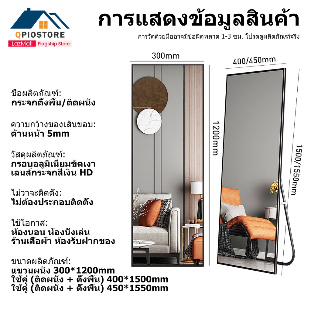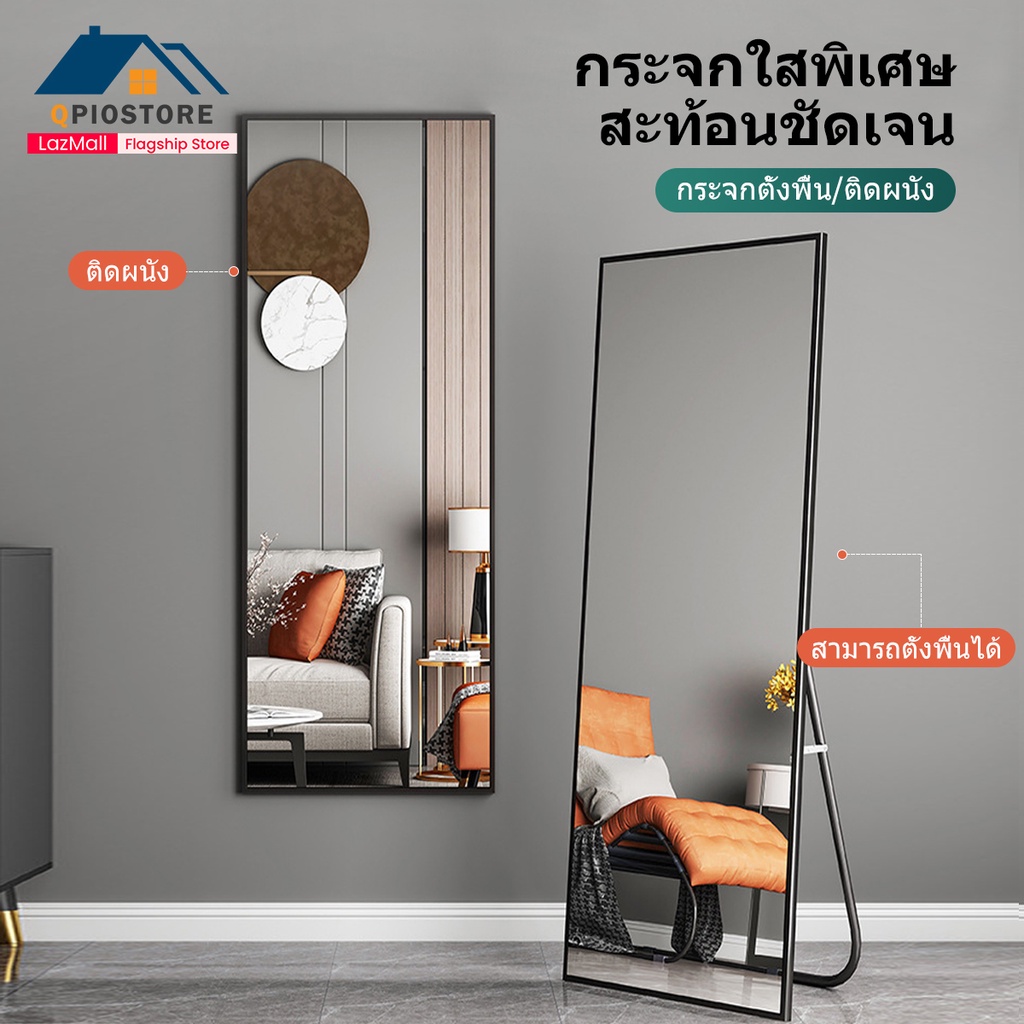 qpio กระจกยาวกระจกเต็มตัว165cm*60cm กรอบแคบพิเศษกระจกทรงสูง พร้อมใช้งาน ตั้งพื้นหรือแขวนผนังห้องได้