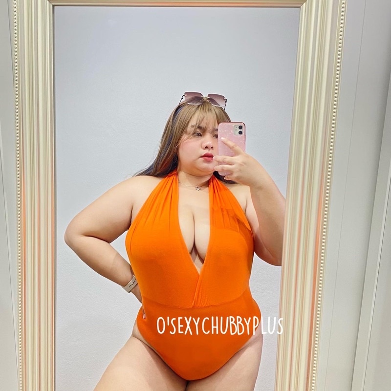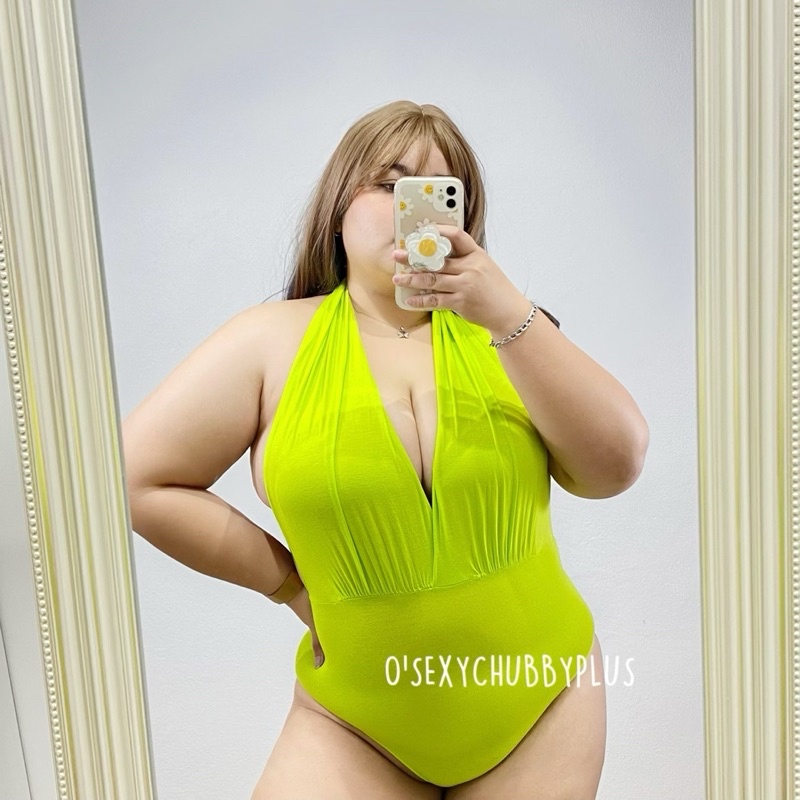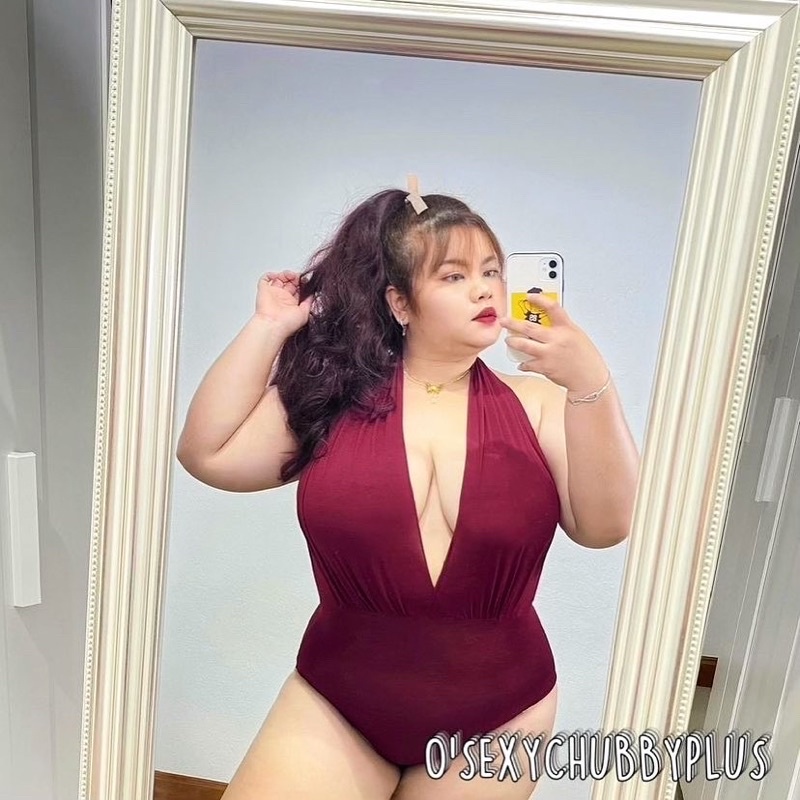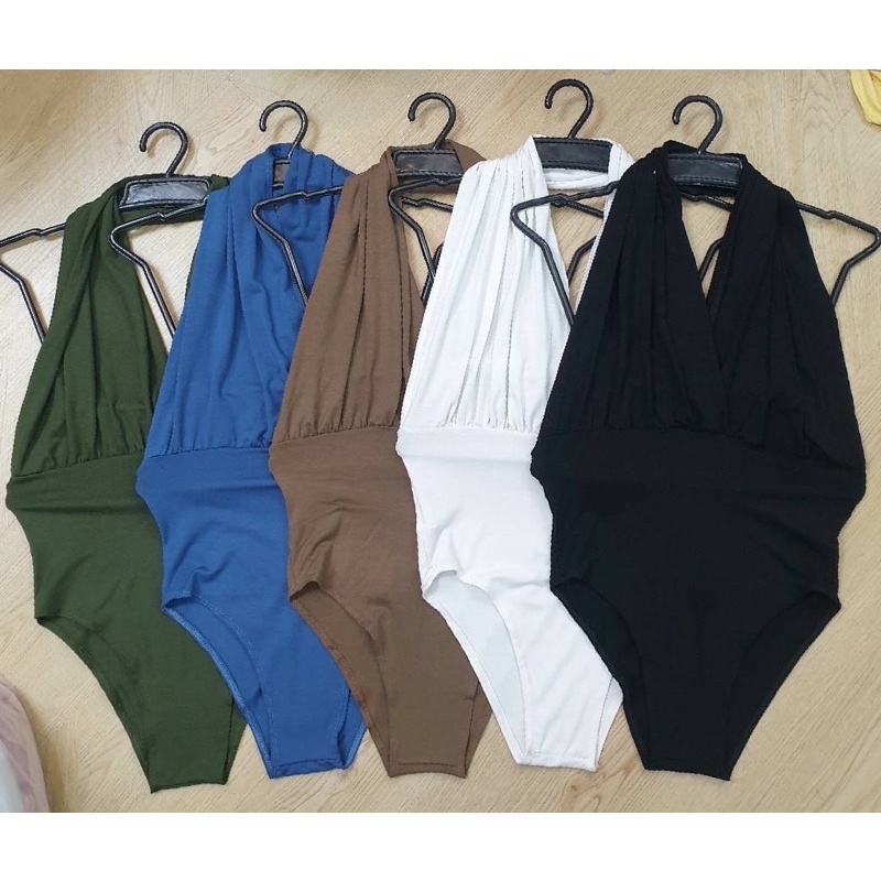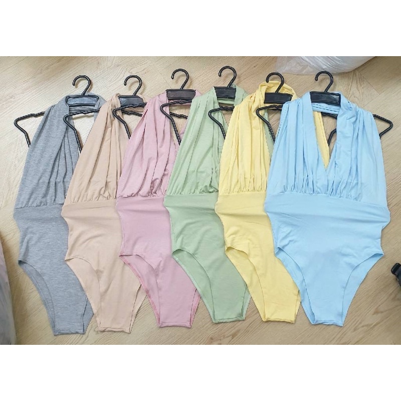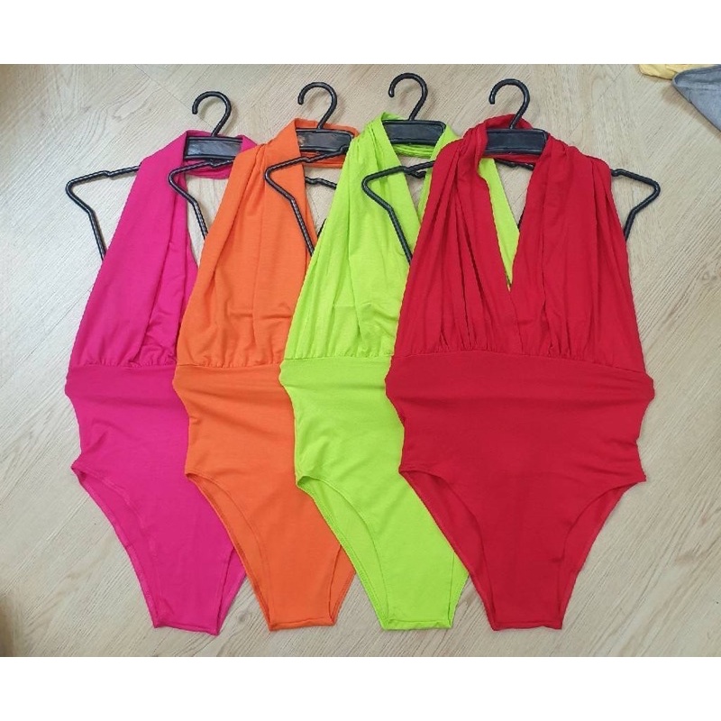 บอดี้สูทคล้องคอ ผ้าร่องยืดได้ตามขนาดตัว ในรูปแม่ค้าใส่เอง