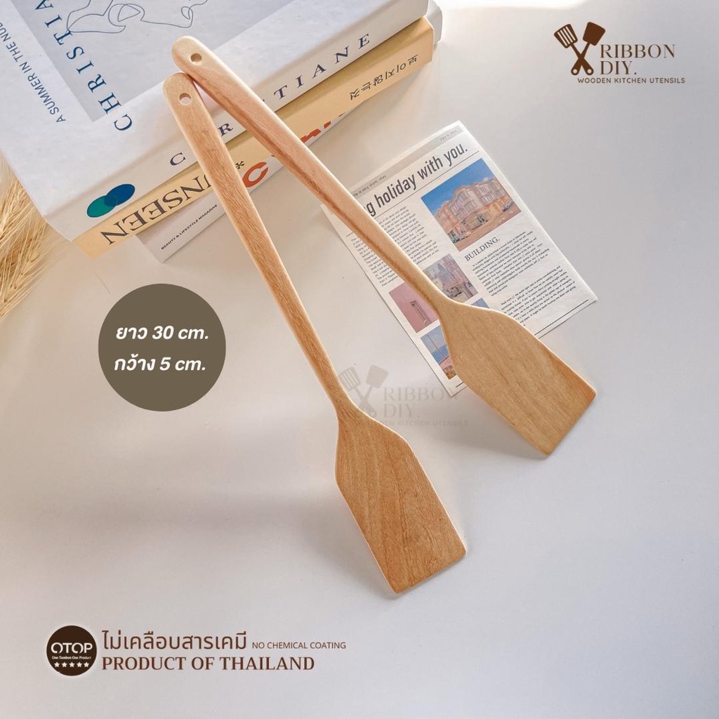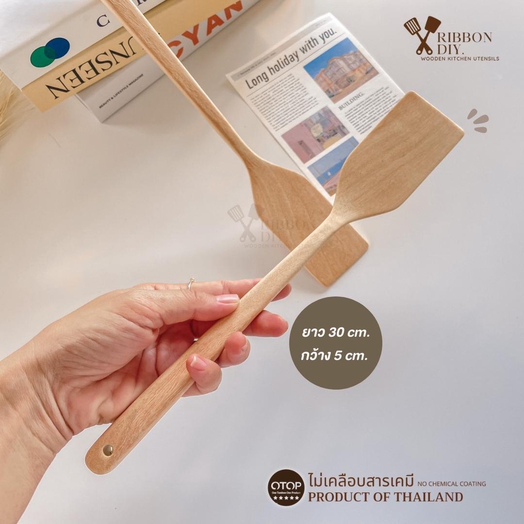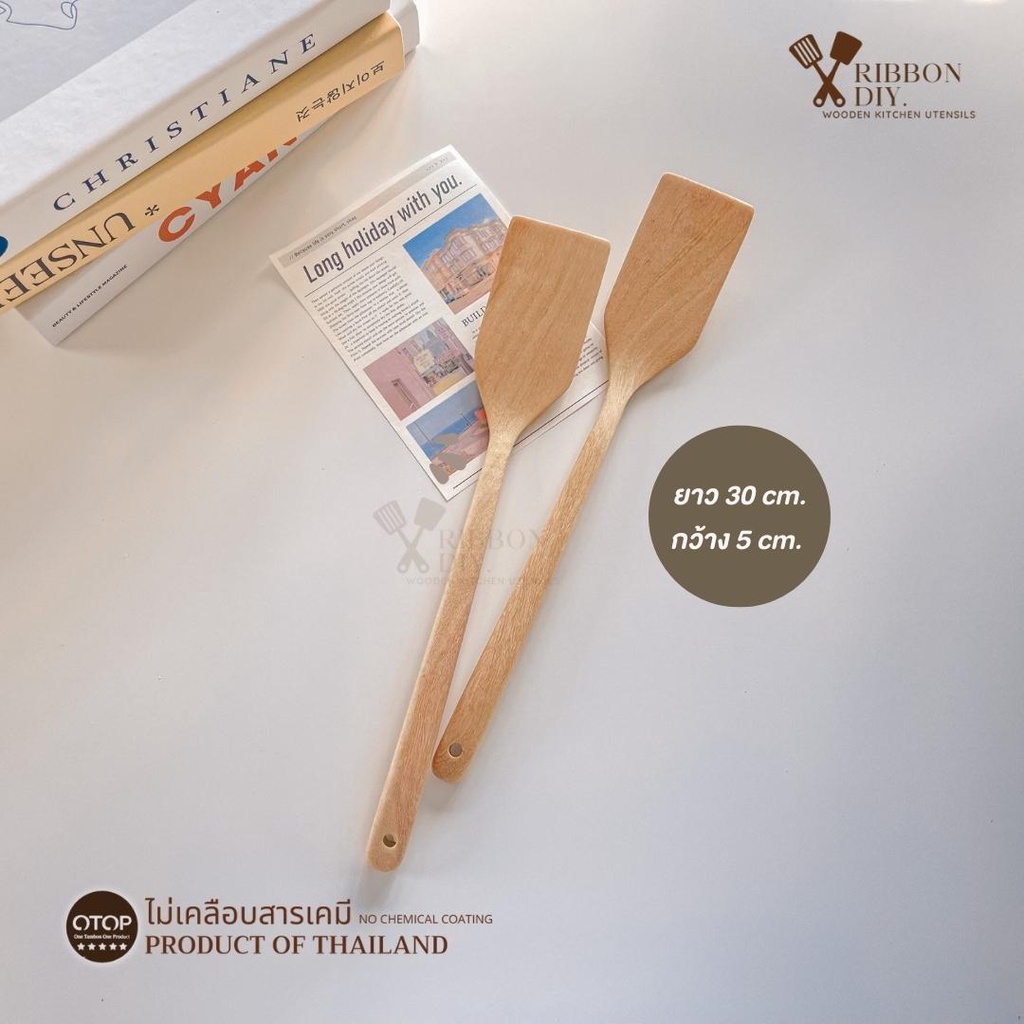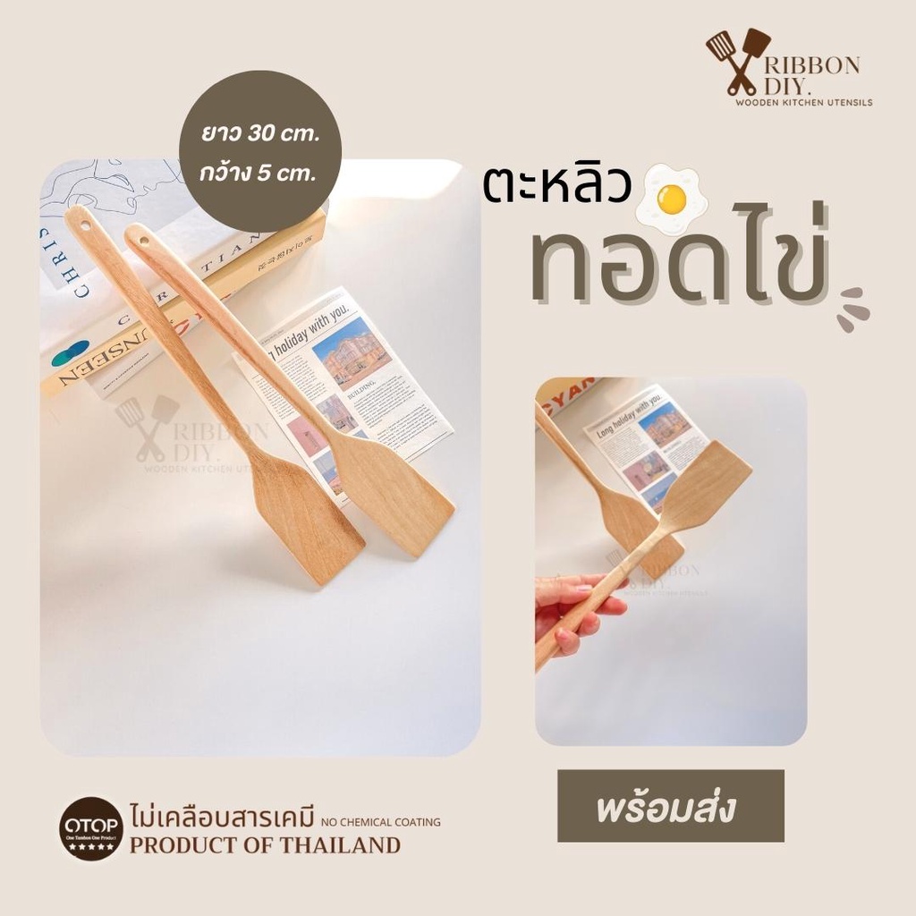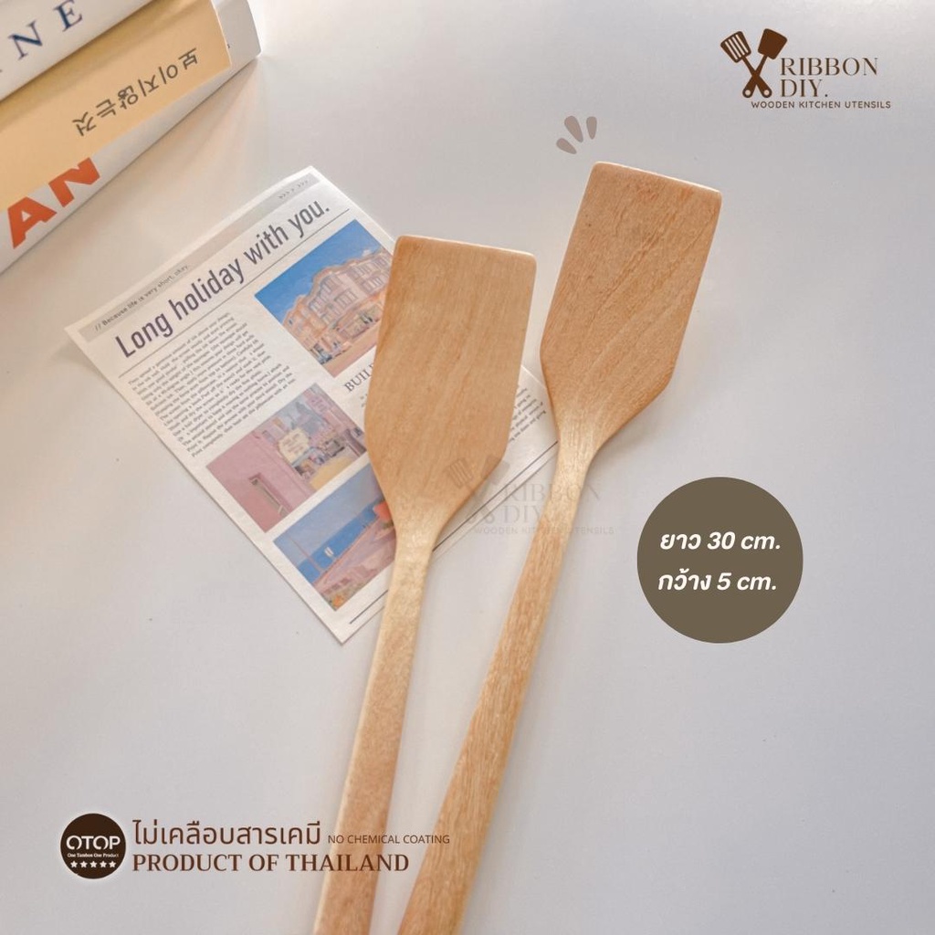 ตะหลิวไม้ แบบบาง หน้าแคบ สำหรับทอดไข่ในกระทะหลุม ไม่เคลือบสารเคมี (ราคา ต่อ 1 ชิ้น ) C-017