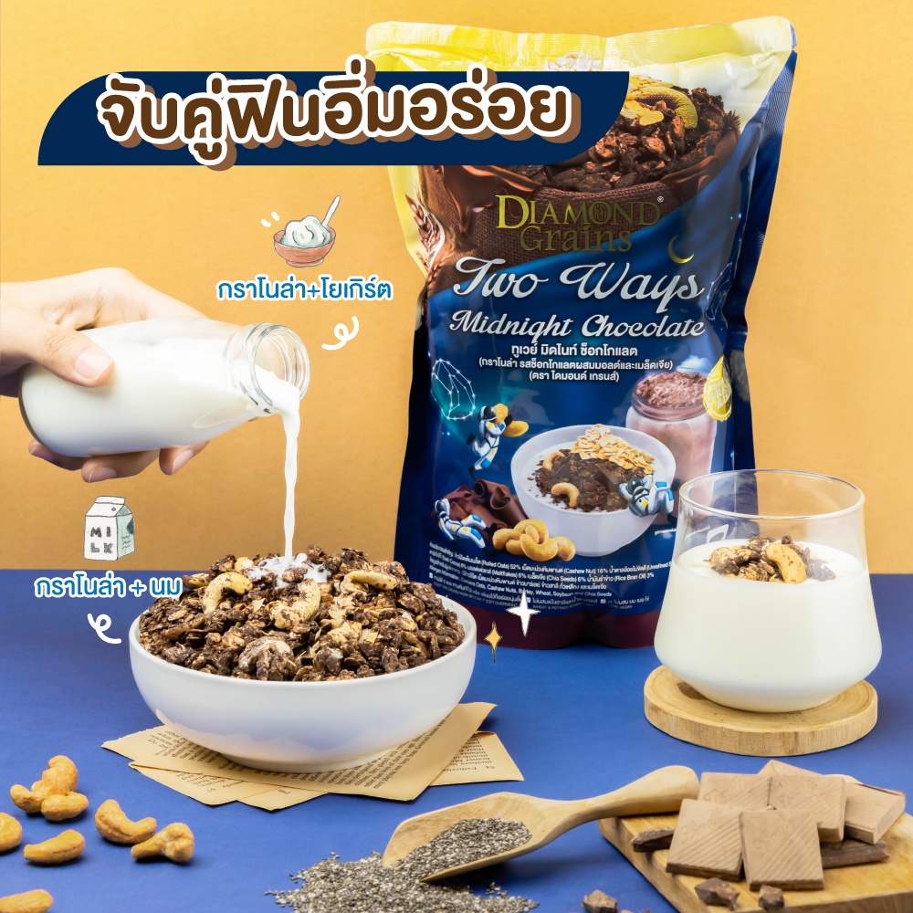 Diamond Grains กราโนล่า สูตร Two Way Granola มีหลากหลายรสให้เลือก ขนาด 38 กรัม แพ็ค 6 ชิ้น ไดมอนด์เกรนส์