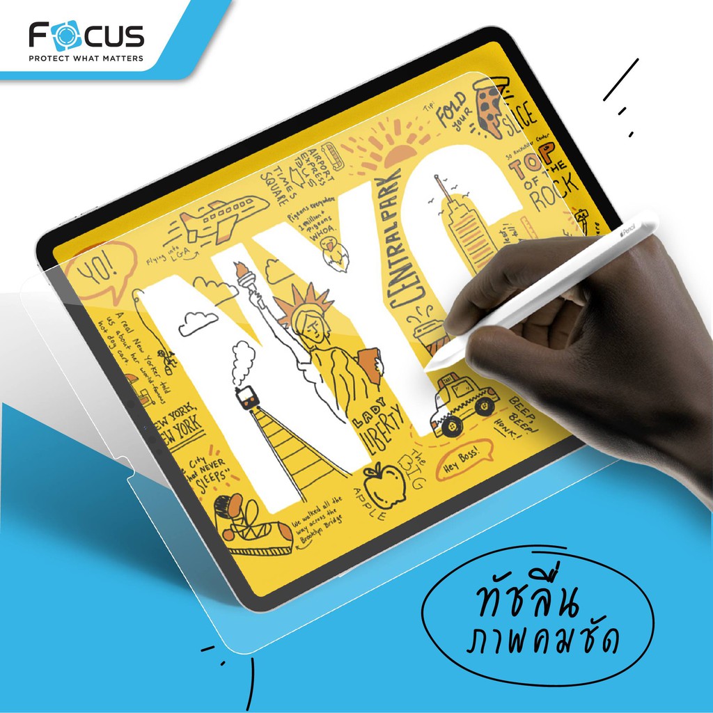 ฟิล์มกระจก เต็มจอ Focus for iPad Air 6 5 4 3 10.9 Gen 10 9 8 7 10.2 Pro 13 11 12.9 Mini กันรอย ไอแพด