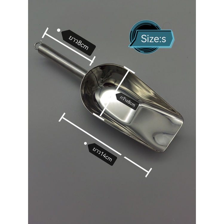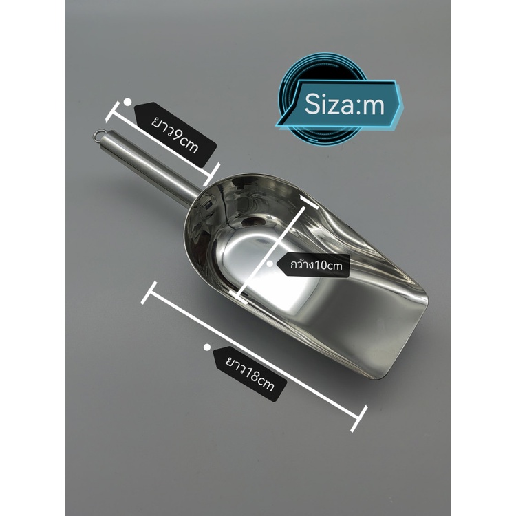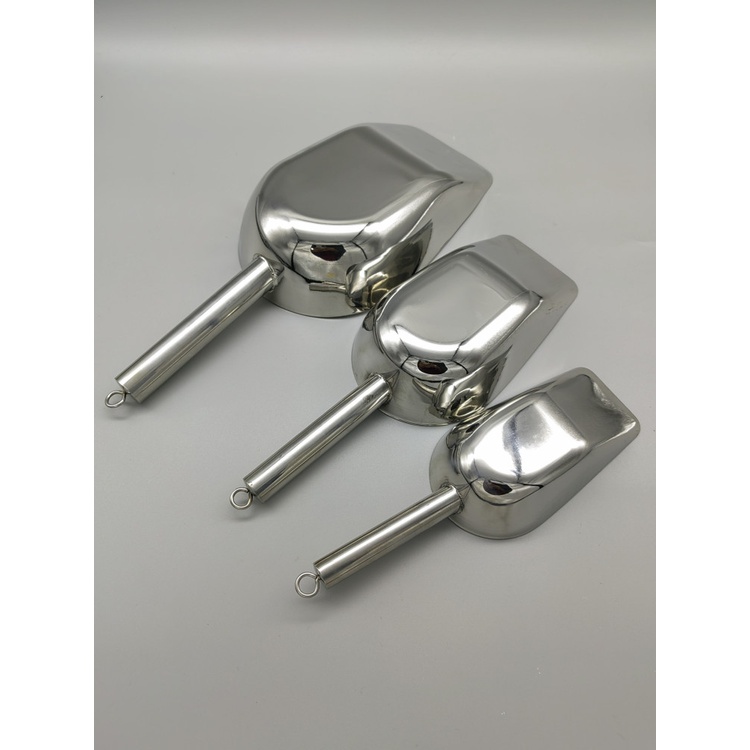 ที่ตักน้ำแข็ง ตักอาหาร ข้าวสาร สแตนเลสแท้ มี 3 ขนาดให้เลือก
