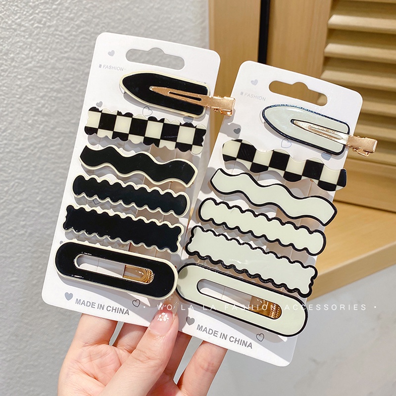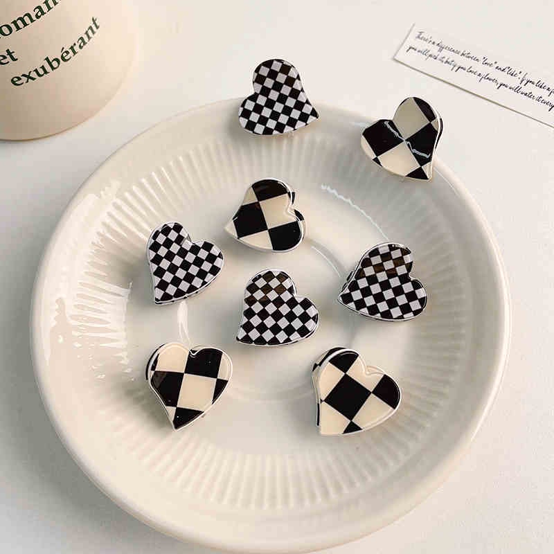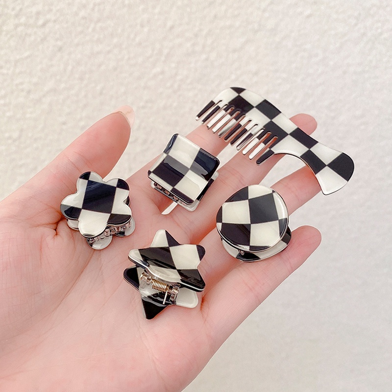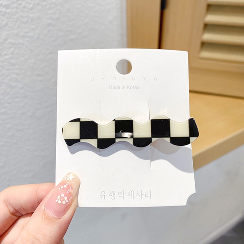 กิ๊บติดผม อะคริลิค ลายหมากรุก สีดํา และสีขาว แบบเรียบง่าย แฟชั่นเกาหลี สําหรับผู้หญิง สไตล์เดียวกับขุนนาง