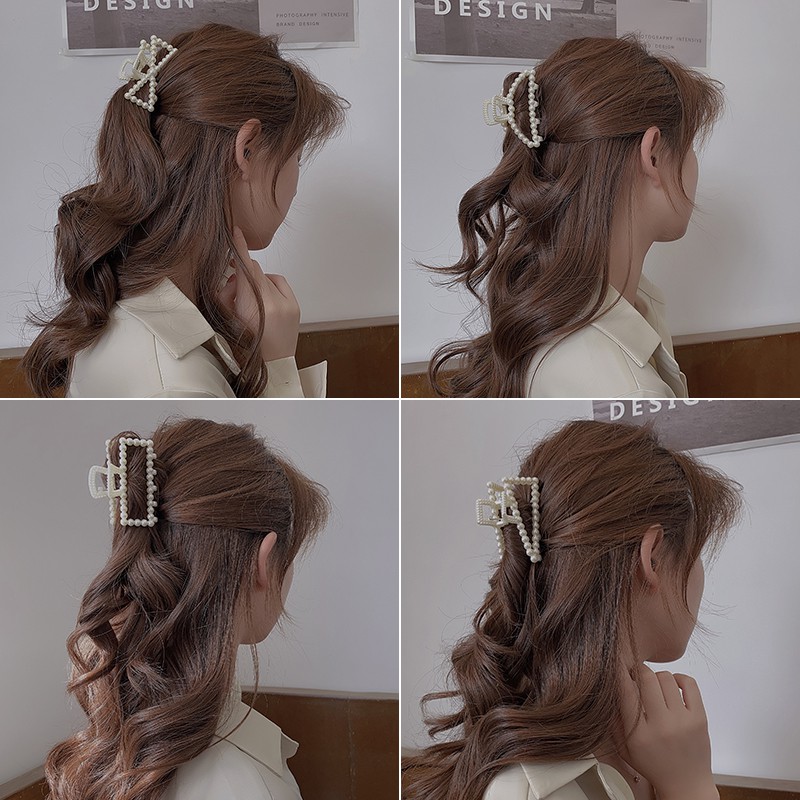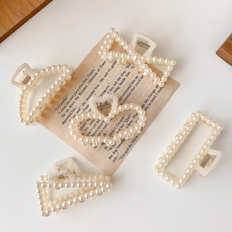 กิ๊บหนีบผม รูปทรงเรขาคณิต ประดับมุก สไตล์เกาหลี