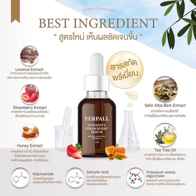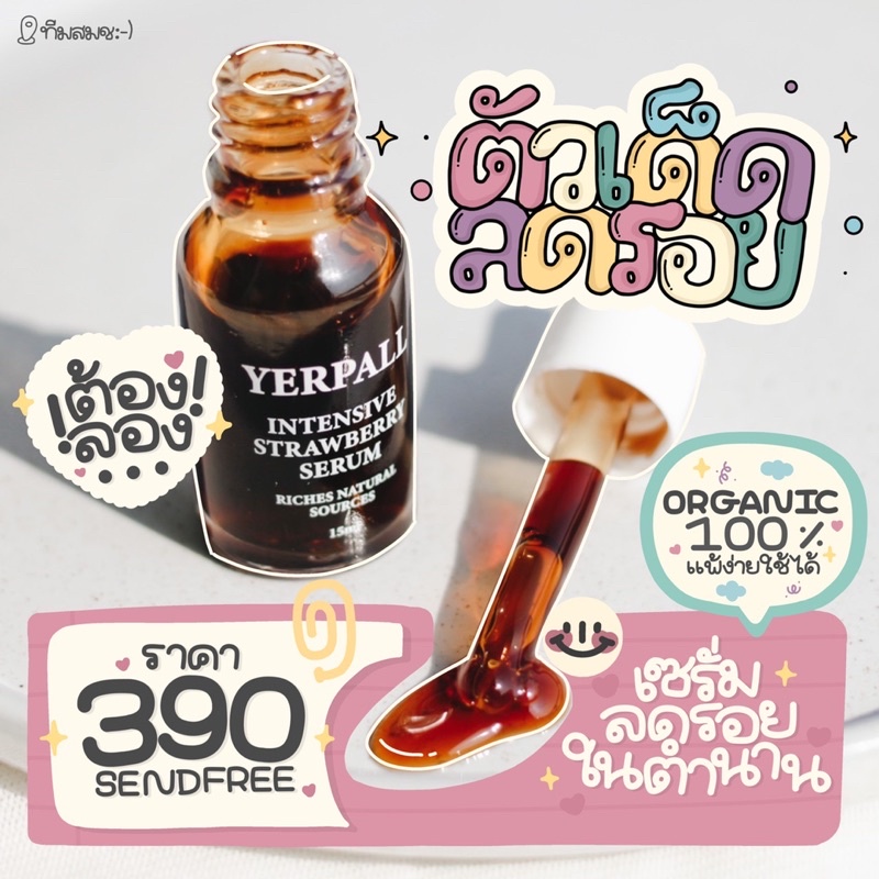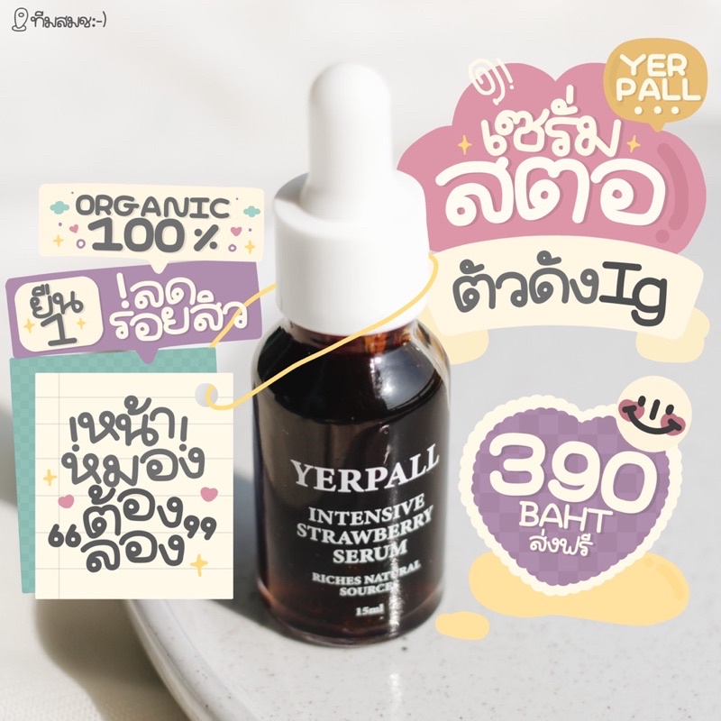 🔥ลด60 โค้ด Q3PAVHU‼️(ของแท้/ส่งฟรี/เก็บปลายทาง)🍓เซรั่มสตอว์เบอร์รี่ YERPALL ยืน1 ลดรอยสิว 15ml.