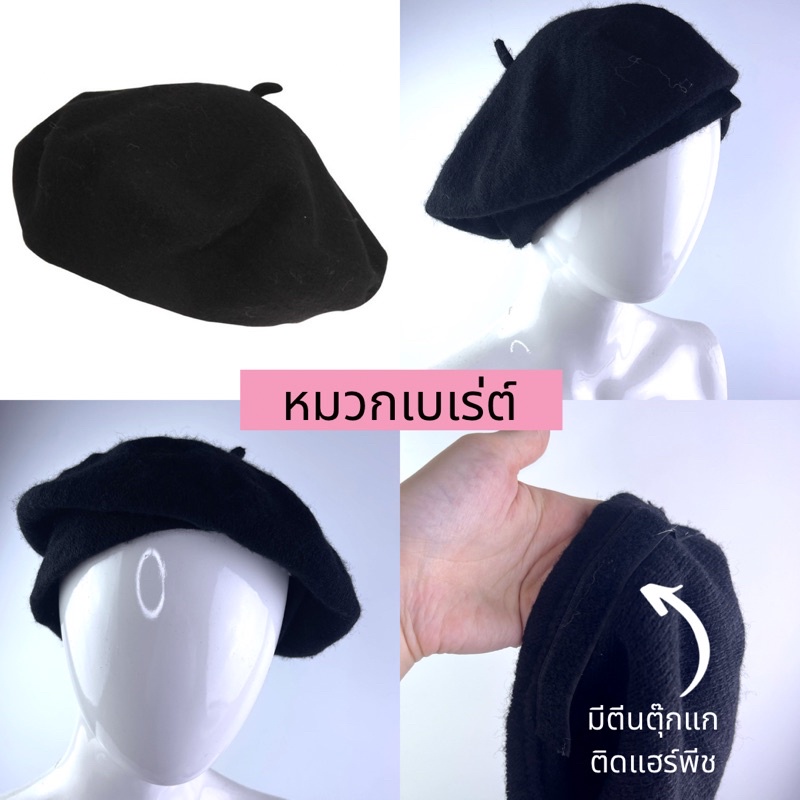 19 บาทเหมือนได้ฟรี! เหลือแค่ หมวกเบเร่ต์นะคะ สีดำ มีตีนตุ๊กแกไว้ติดแฮร์พีชหมวกวิก