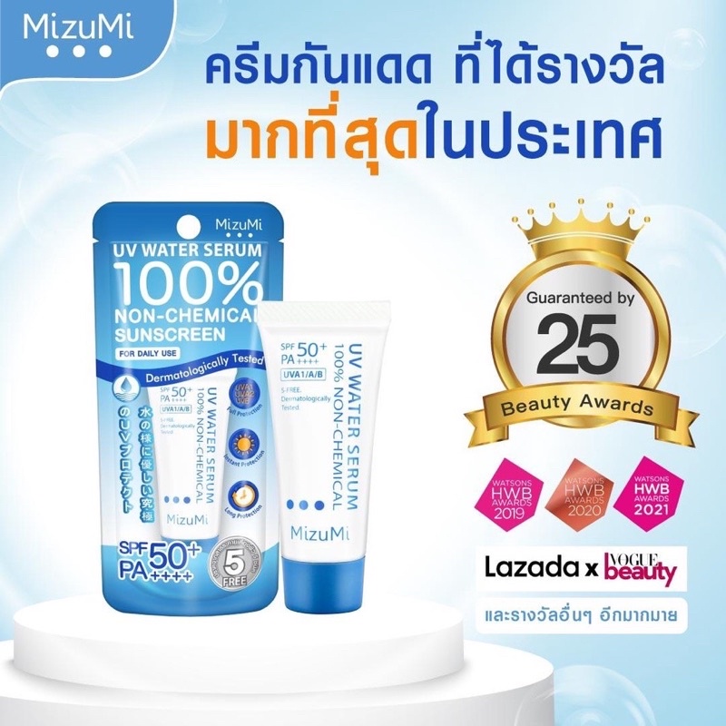 ส่งฟรี/มีไลฟ์ มิซูมิ ยูวี วอเตอร์ เซรั่ม MIZUMI UV WATER SERUM 100% NON-CHEMIAL SUNSCREEN 8 กรัม