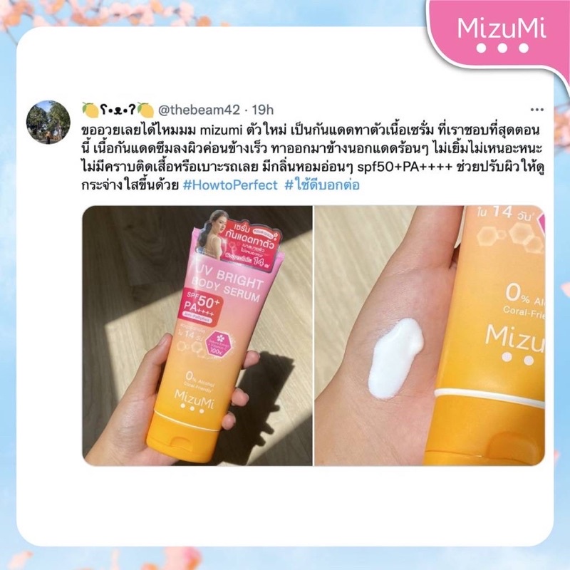 ส่งฟรี/มีไลฟ์ Mizumi เซรั่มกันแดดทาผิวกาย มิซึมิ เบาสบายผิว หอมละมุน MizuMi UV Bright Body 180 ml.