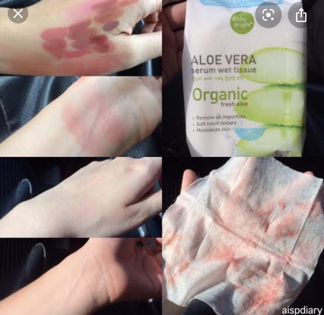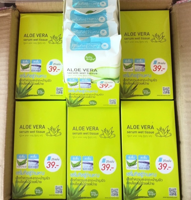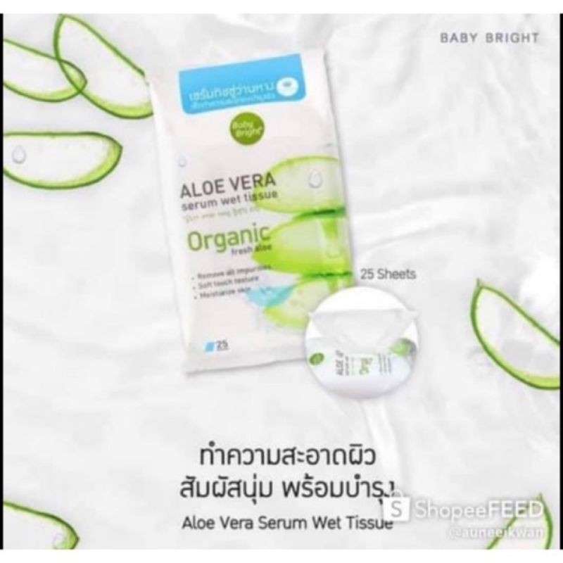 ส่งฟรี/มีไลฟ์ Baby Bright Aloe Vera Serum Wet Tissue เบบี้ไบร์ท ทิชชู่เปียก แผ่นเช็ดเครื่อง สําอาง 25 แผ่น