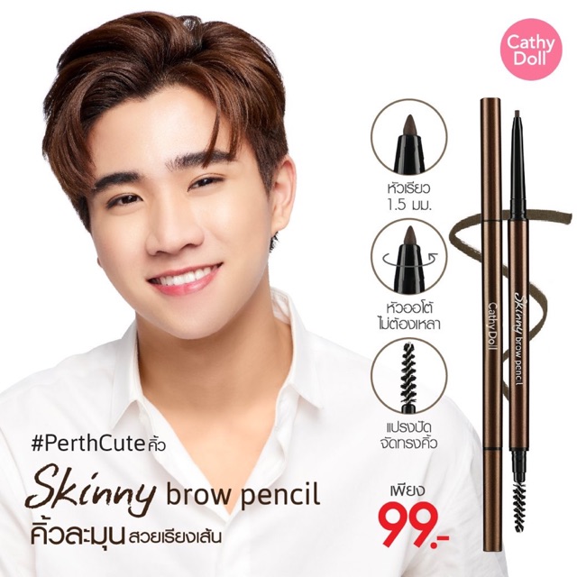 ส่งฟรี/มีไลฟ์ ดินสอเขียนคิ้วสกินนี่หัวเล็ก เคที่ ดอลล์ Skinny Brow Pencil 1.5 mm Cathy Doll Karmart