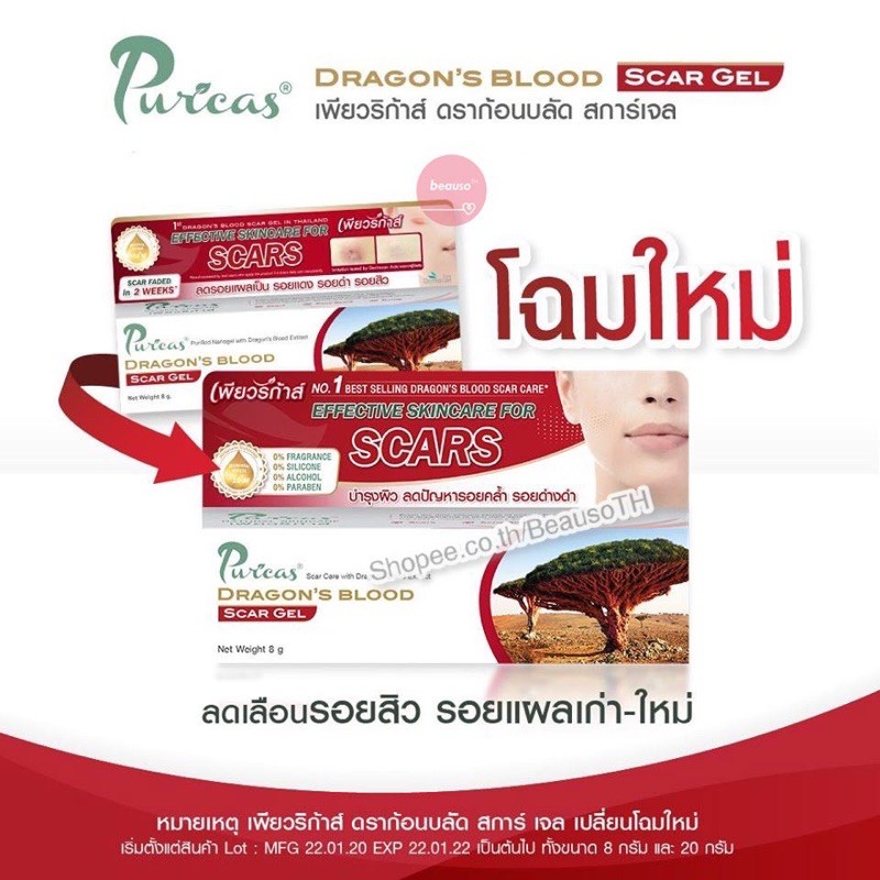 ส่งฟรี/มีไลฟ์ เพียวริก้าส์ ดราก้อนบลัด ลบรอยแผลเป็น เจลแต้มสิว Puricas dragon blood scargel