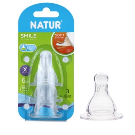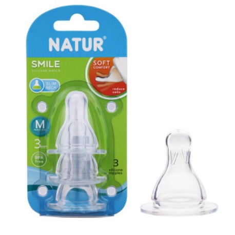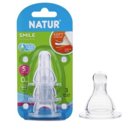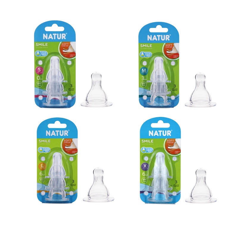 Natur จุกนมคอแคบ เนเจอร์จุกนมคอแคบสไมล์ ไซซ์ S/M/L/X 1 แพ็ก 3 จุก
