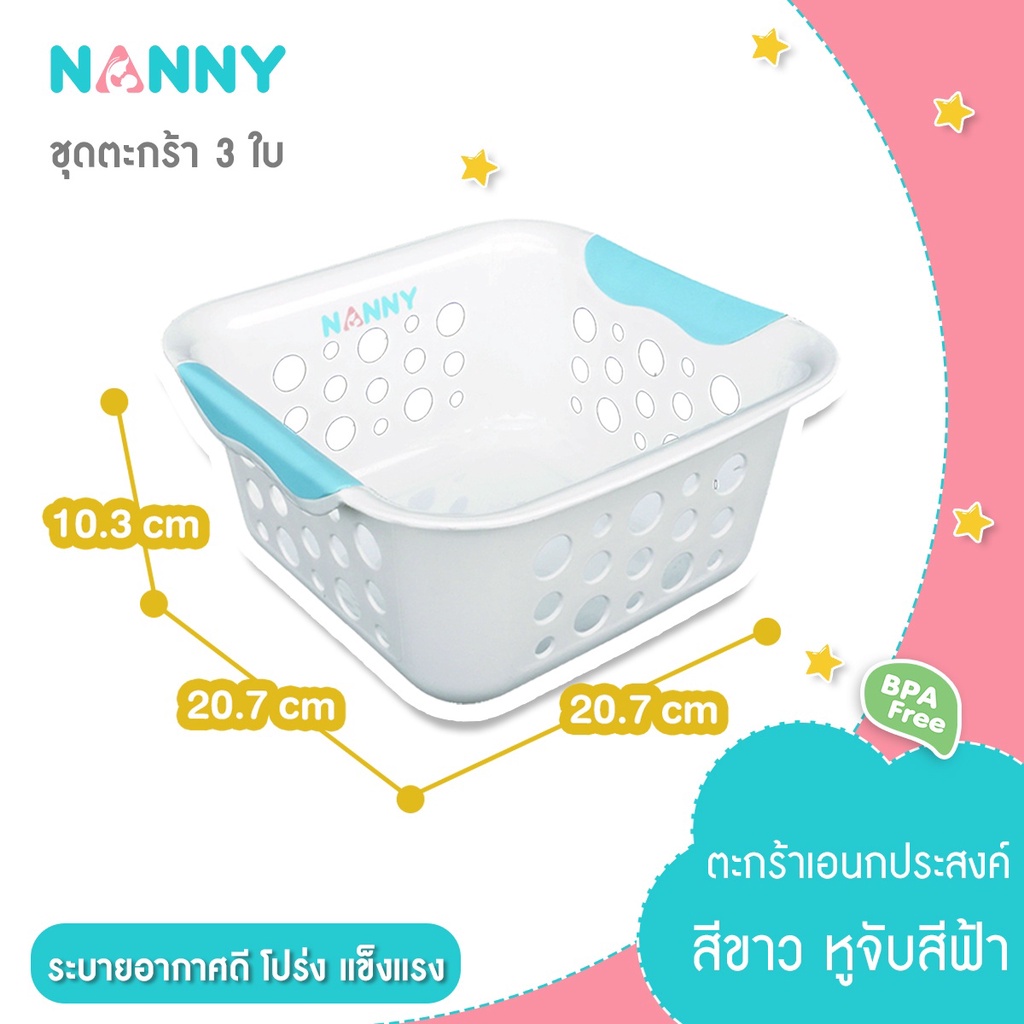 Nanny ตะกร้าพลาสติก อเนกประสงค์ ใส่ของ ชุดเซต 3 ใบ