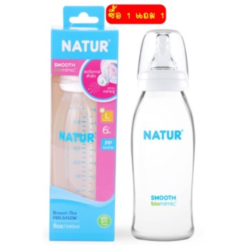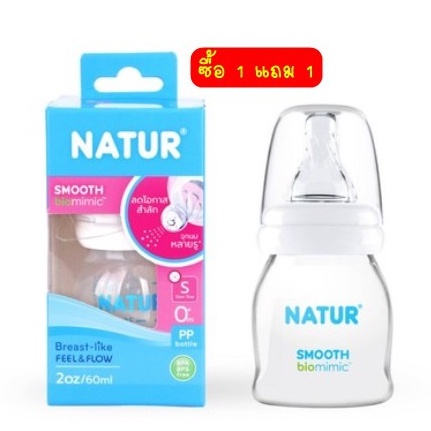 (1 แถม 1 ) ขวดนม Natur ขวดนมคอแคบ สมูทไบโอมิมิค จุกเสมือนนมแม่ น้ำนมไหลลื่นลดการสำลัก