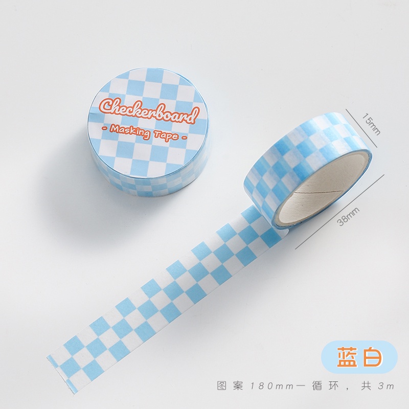 imoda 1ม้วน กระดานหมากรุก Washi เทป เทปกาว ins diy สมุดไดอารี่ เครื่องเขียนตกแต่ง