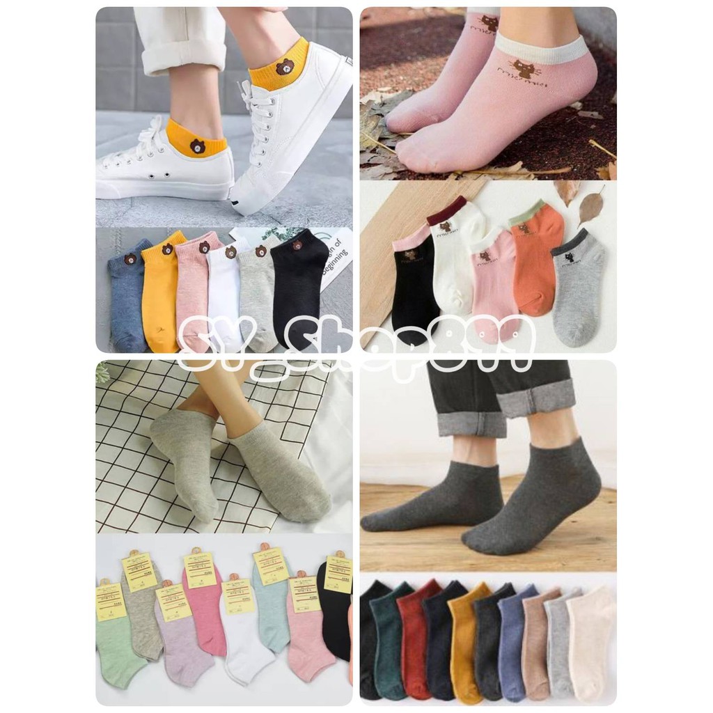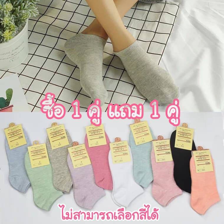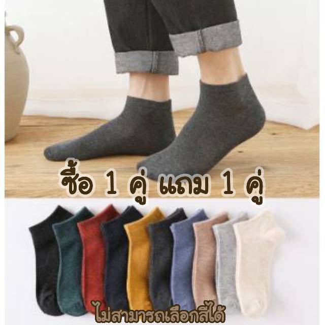 [ซื้อ1คู่ แถม 1คู่ ] ถุงเท้าข้อสั้น ใส่ได้ทั้ง ช / ญ ไม่สามารถเลือกสีได้ มีหลายแบบให้เลือก