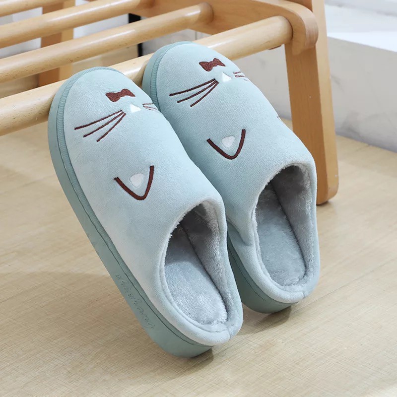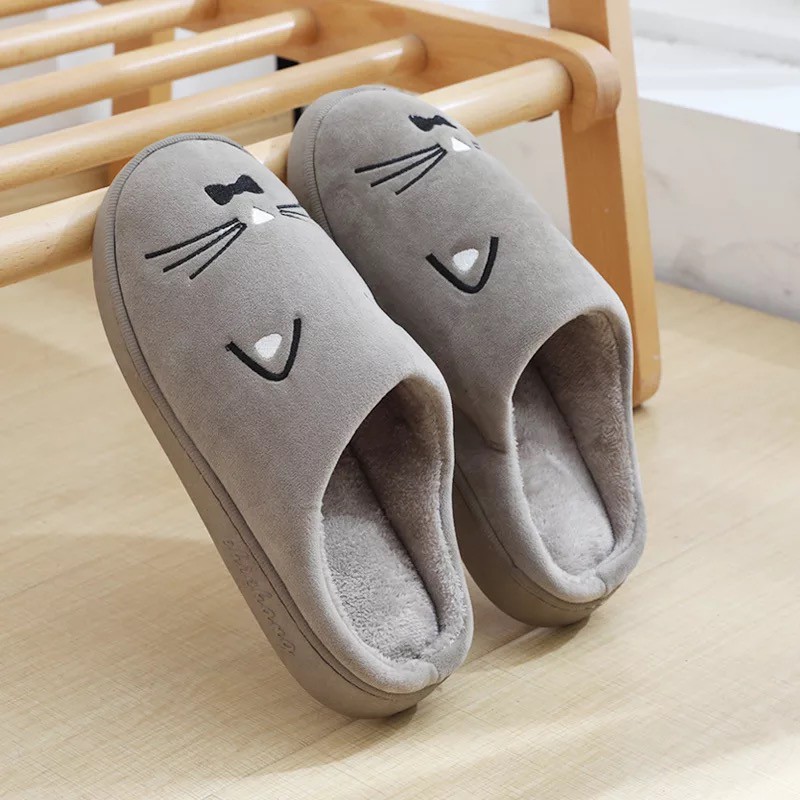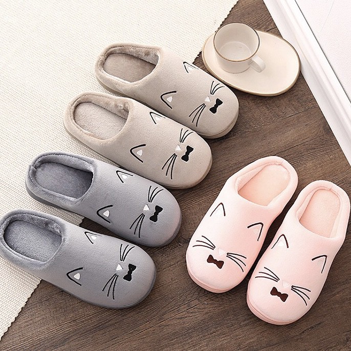 รองเท้าใส่ในบ้าน ผ้ากำมะหยี่ (ลายแมว) หนาหนุ่ม กันหนาว 🔥พร้อมส่ง🔥