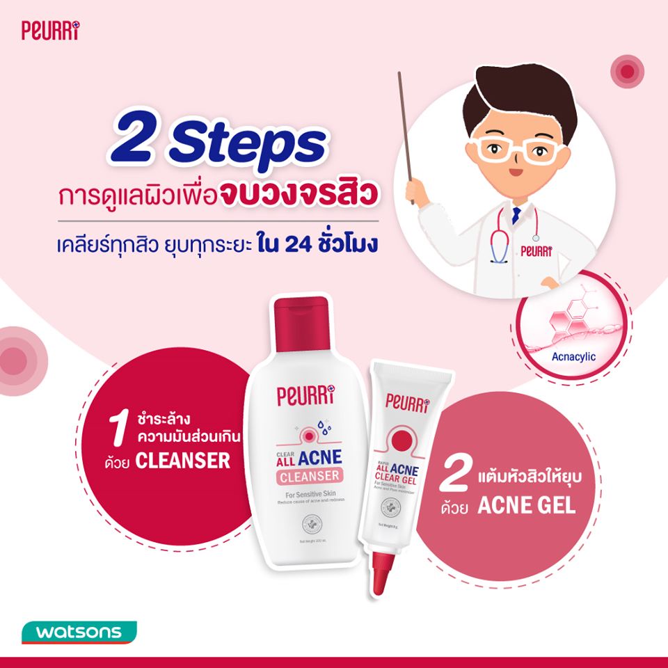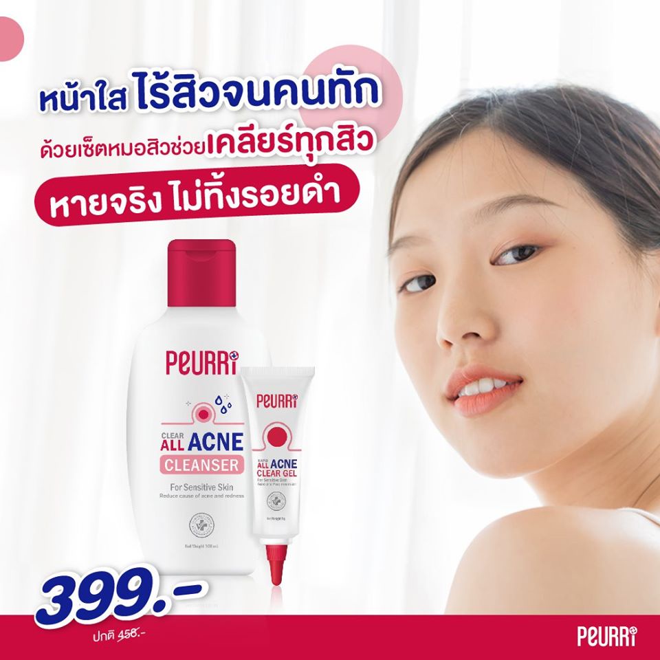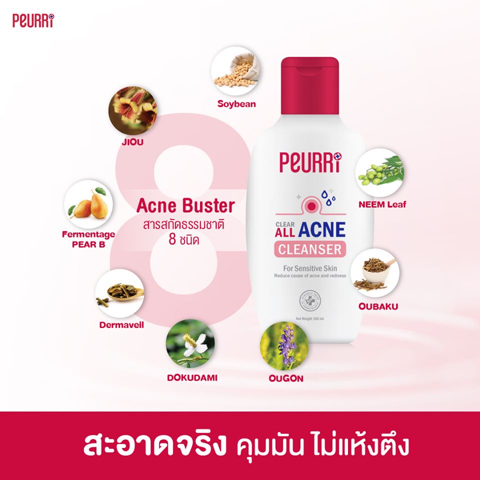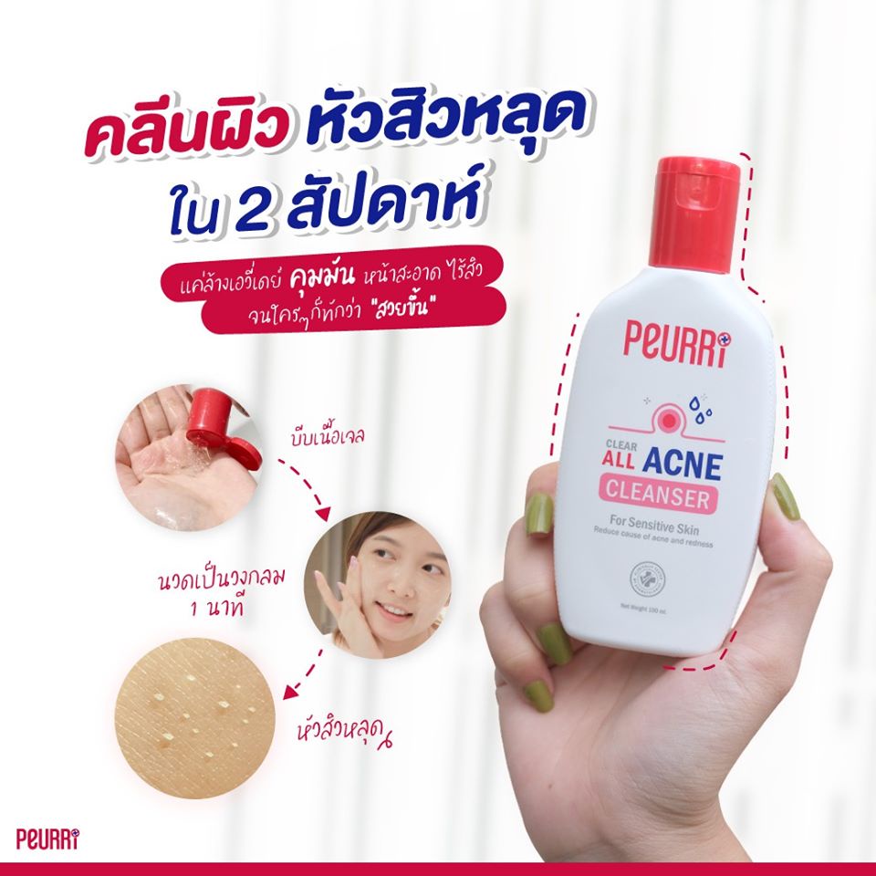 Peurri clear all acne cleanser 100ml เจลล้างหน้าเพียวรี่ เจลทำความสะอาดผิวหน้า ลดสิว ควบคุมความมัน