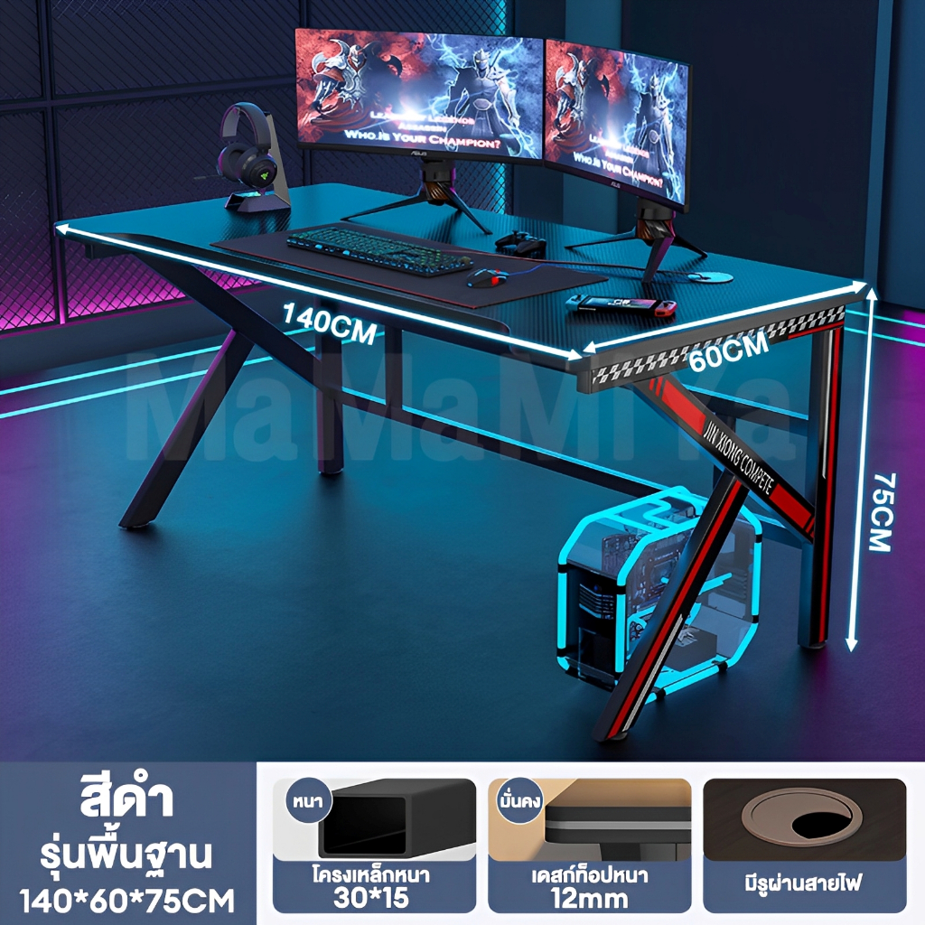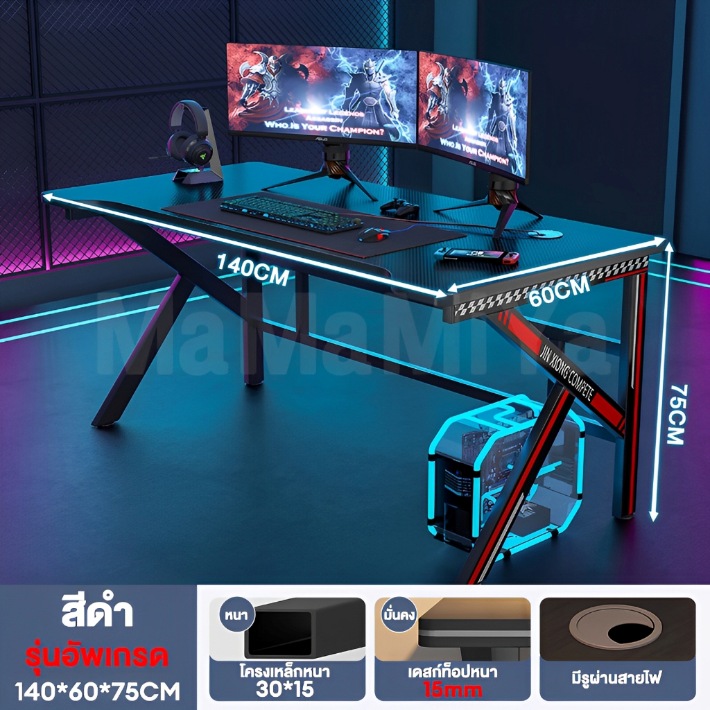 MMY โต๊ะคอม โต๊ะเกมมิ่ง 140/120CM ขาโลหะแข็งแกร่งรุ่นพิเศษ โต๊ะทำงาน ใช้ได้ทั้งในห้องนอนและสถานที่ทำงาน GamingTable
