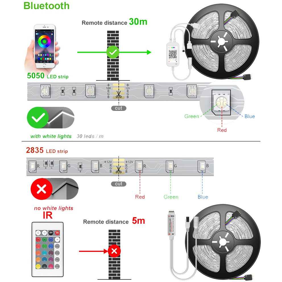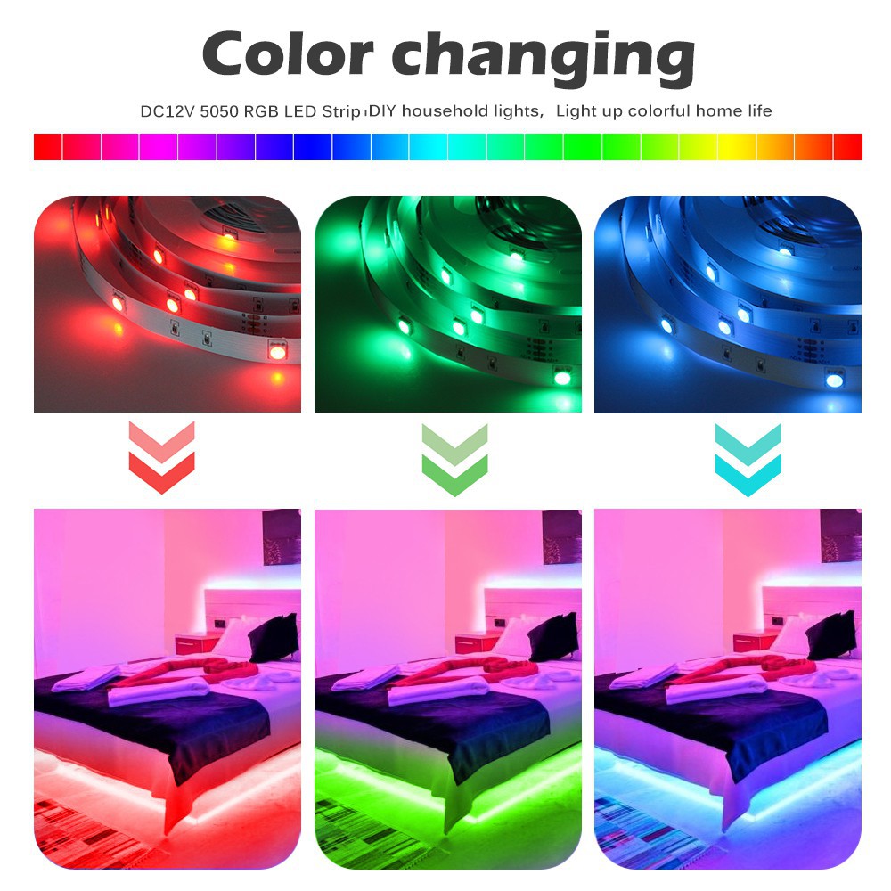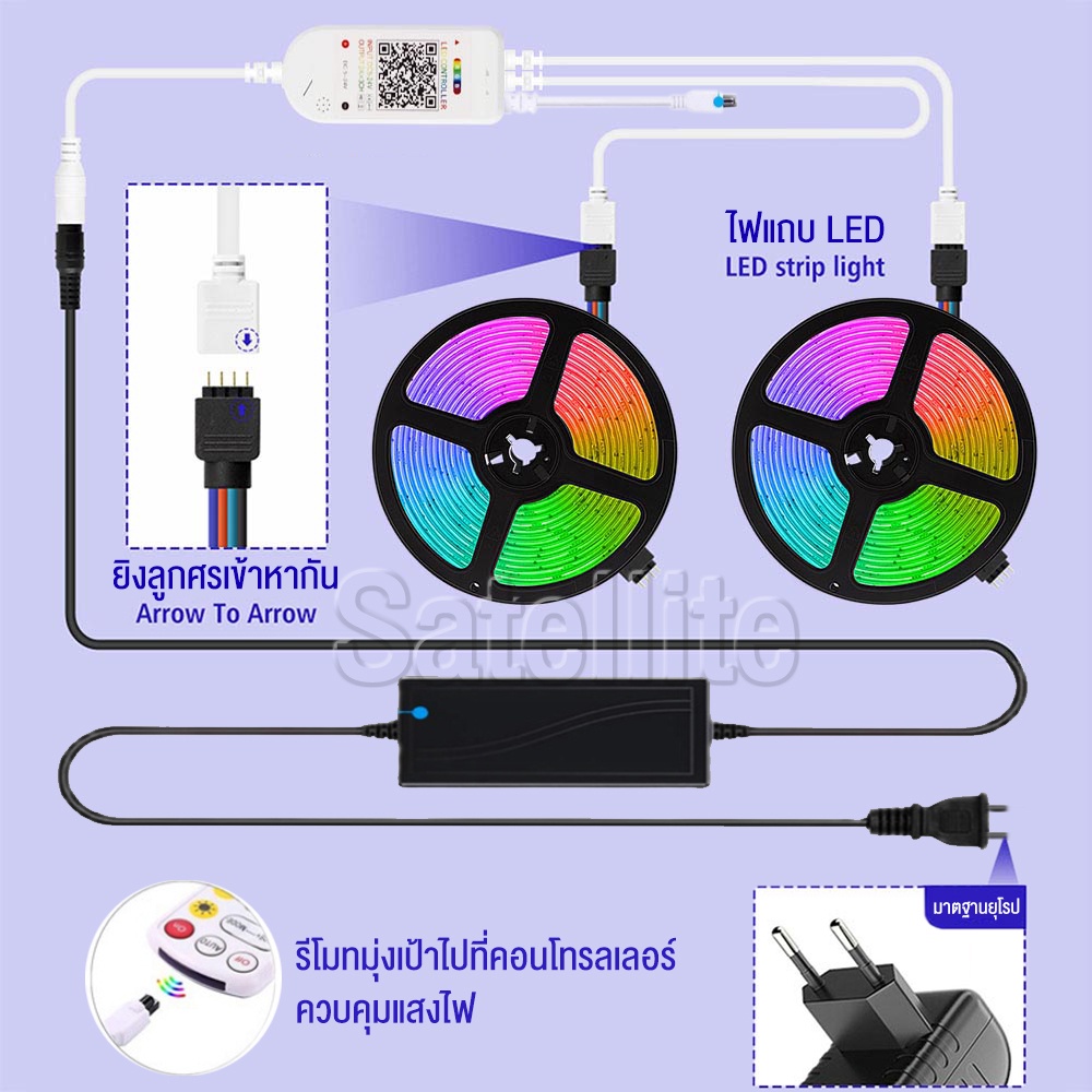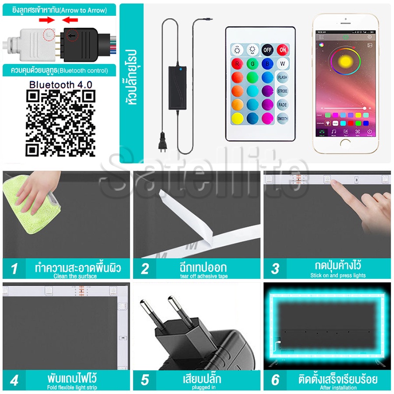 【รับประกัน10ปี】ไฟเเต่งห้อง ไฟ LED แบบเส้น RGB การซิงโครไนซ์เพลง การไล่ระดับสีที่มีสีสัน ขนาด 5ม.