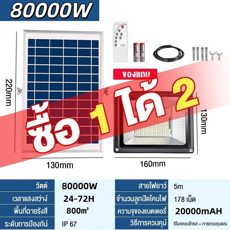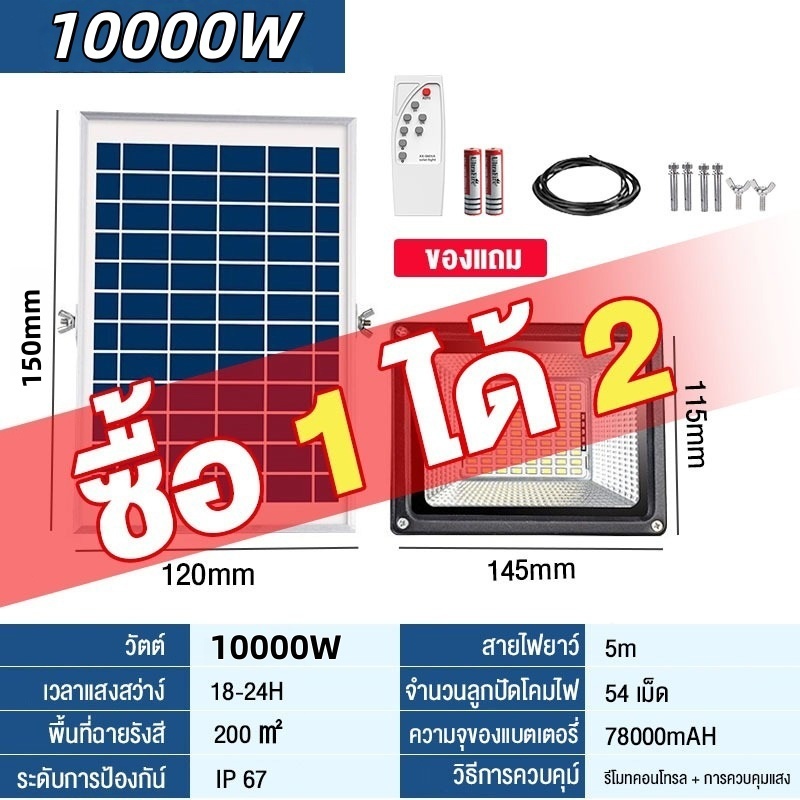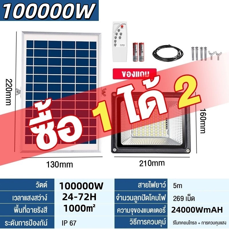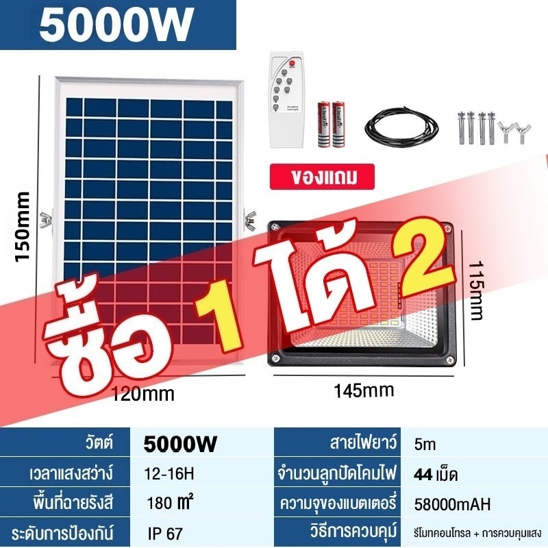 🔥ซื้อ 1 แถม 1🔥ไฟโซล่าเซลล์ กันน้ำกลางแจ้ง ป้องกันฟ้าผ่า Solar light สว่างอัตโนมัติเมื่อฟ้ามืด