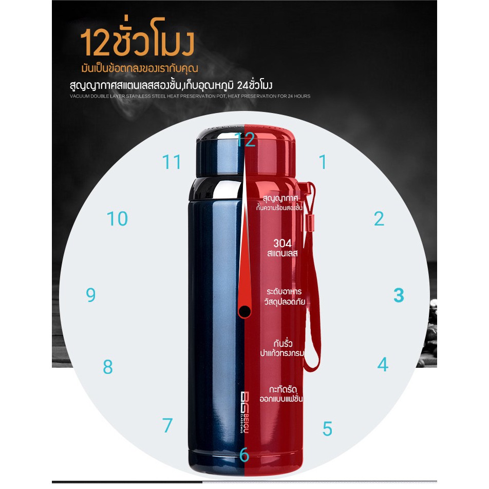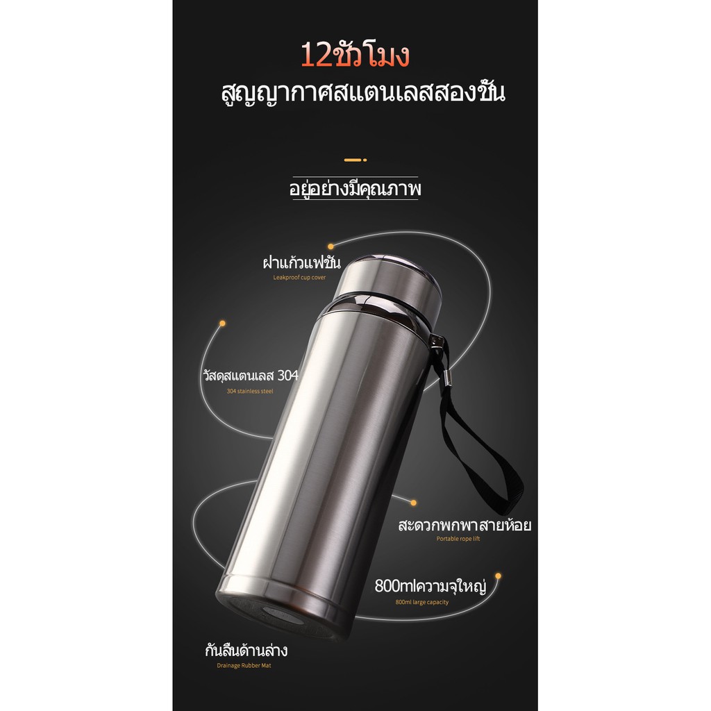 กระติกน้ำสแตนเลส เก็บความร้อน-ความเย็น ขนาด12 ชม 800 มลขวดเก็บน้ำร้อ