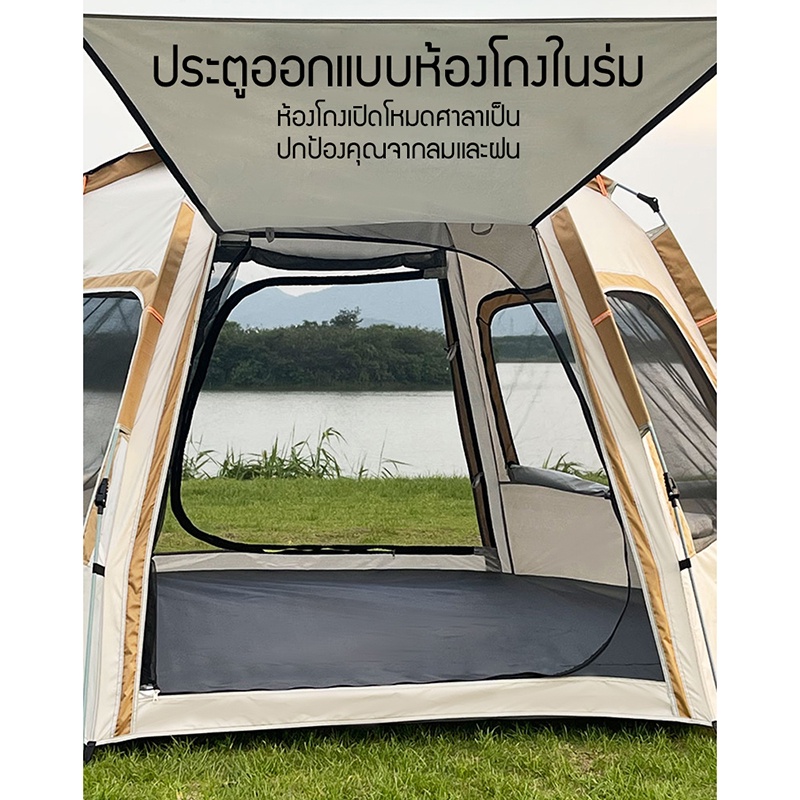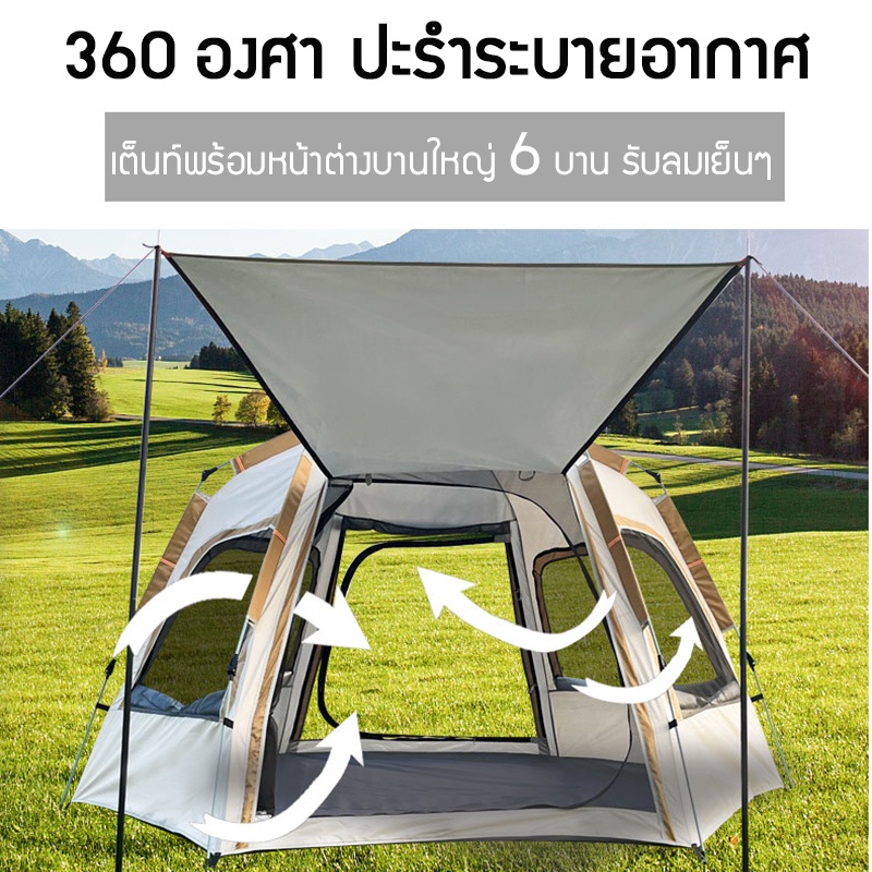 เต็นท์แค้มปิ้ง เต้นท์นอน เต้นสนามกันฝน กางอัตโนมัติ เต็นท์เดินป่า ขนาด4ถึง6คน ระบายอากาศรอบทิ 2 ประตู4 หน้าต่าง