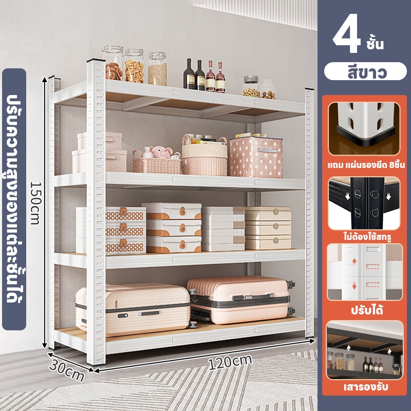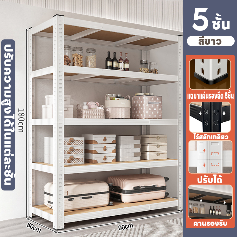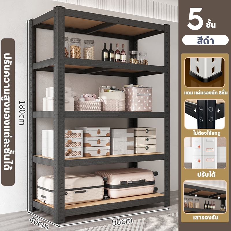 MMM ชั้นวางของ3/4/5ชั้น สแตนเลส+ไม้ รับน้ำหนัก400กก แข็งแรงมาก ตู้หนังสืออเนกประสงค์ ชั้นเหล็ก ชั้นเก็บของ shelf มี 2 ส