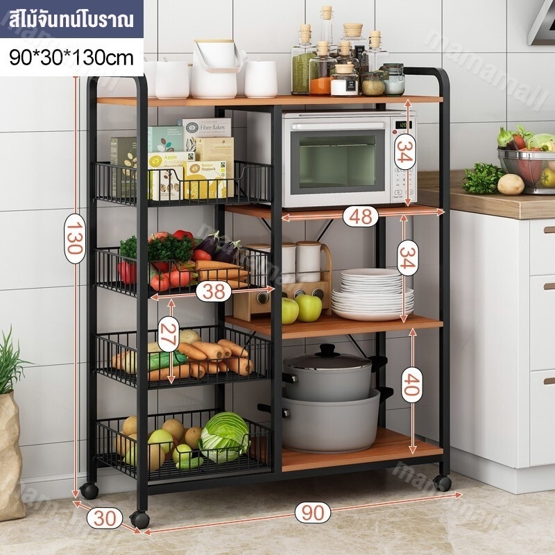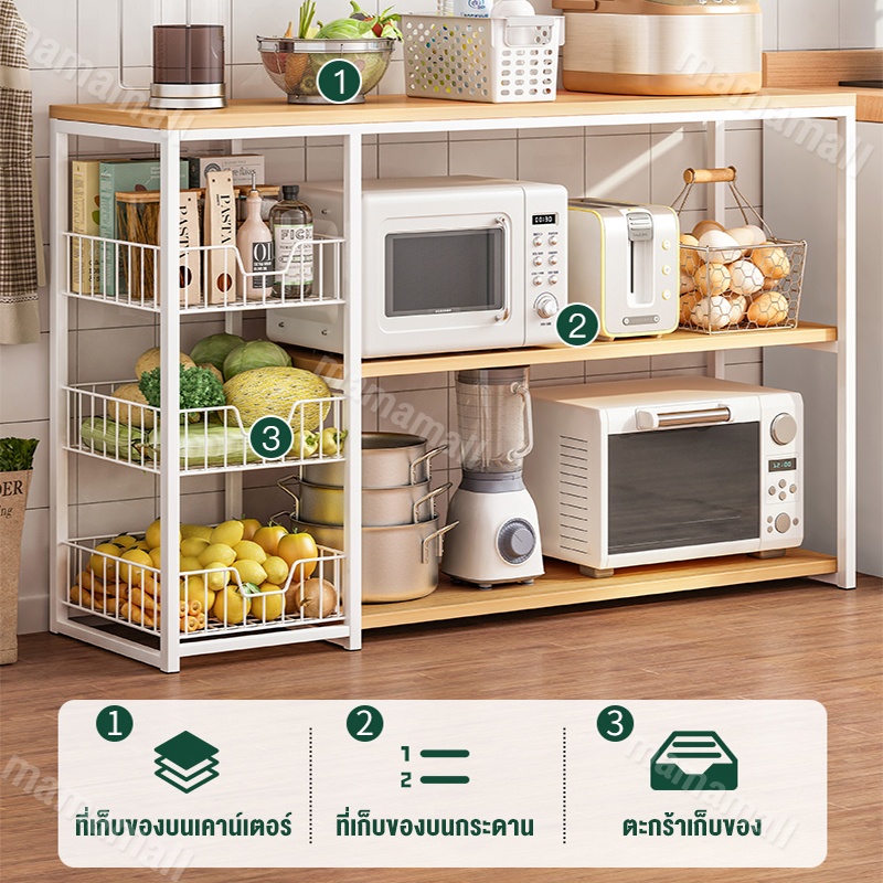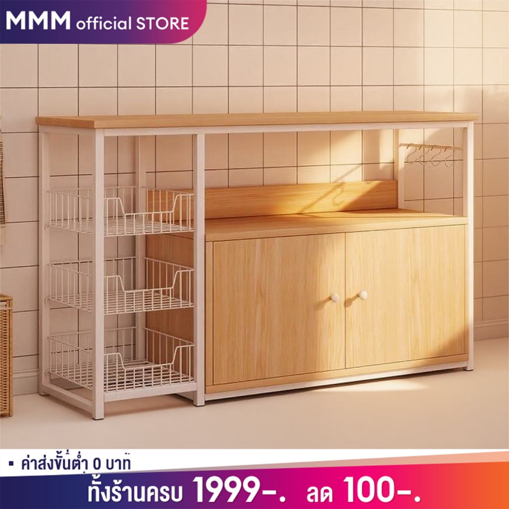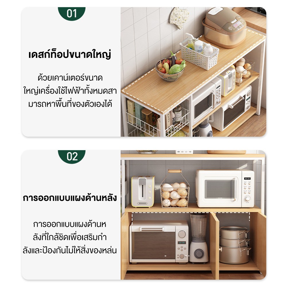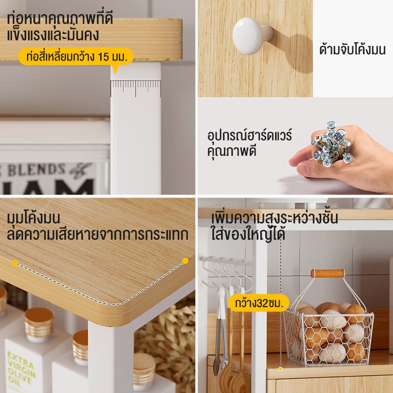 เคาเตอร์ครัว ชั้นวางของใน ครัว ชั้นวางของ ชนิดไม้+โครงเหล็ก ชั้นวางอเนกประสงค์ มีตู้เก็บของด้านล่าง