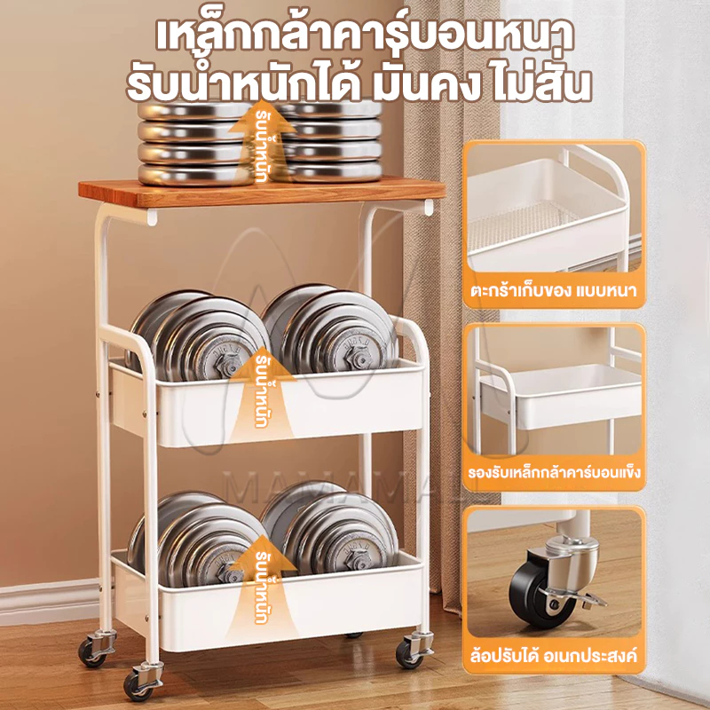 MMM ชั้นวางของรถเข็นพลาสติก 3/4/5ชั้น รถเข็นของ พร้อมล้อเลื่อน+ที่จับ รถเข็นเก็บของ เคลื่อนย้ายสะดวก ใช้ในสถานการณ์ต่างๆ