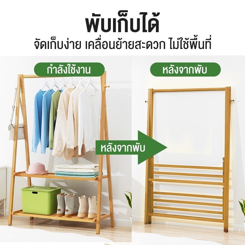 2 ชั้น ราวตากผ้าพับได้ ชั้น วางเสื้อโค้ทห้องนอน เก็บเสื้อผ้าในห้อง ราวแขวนเสื้ออเนกประสงค์ มีล้อเคลื่อนที่สะดวก
