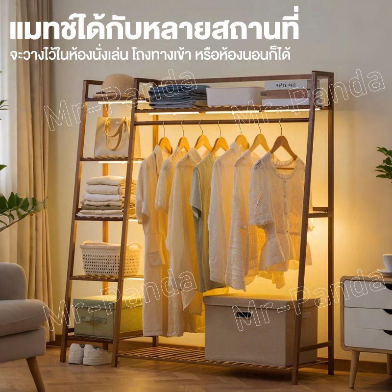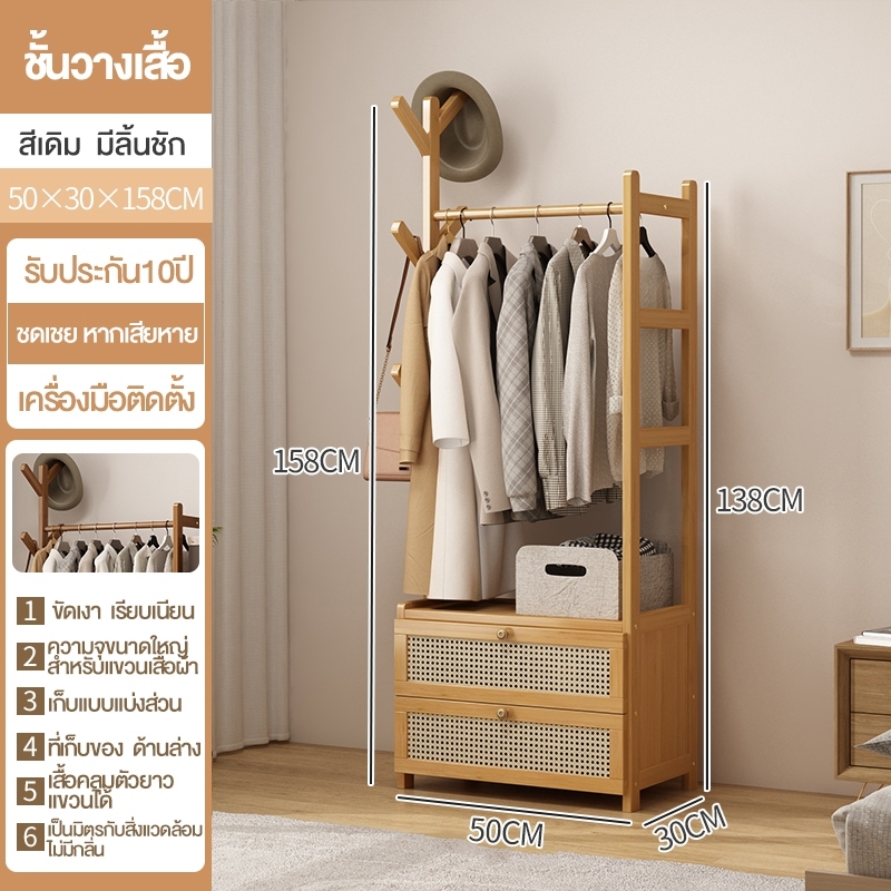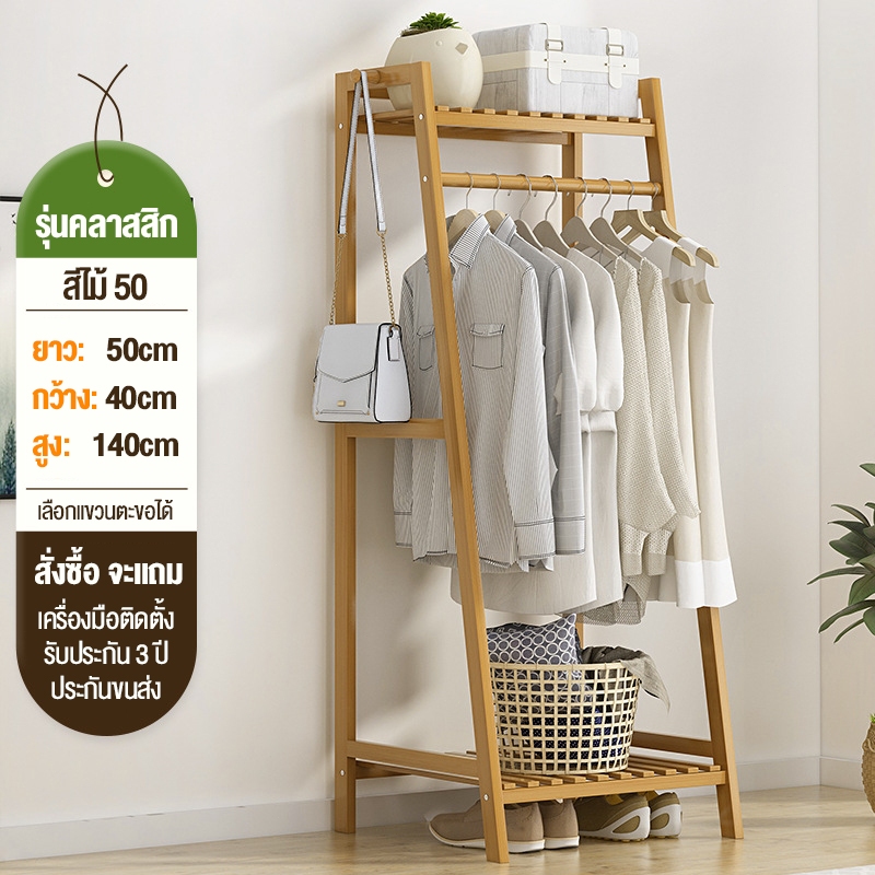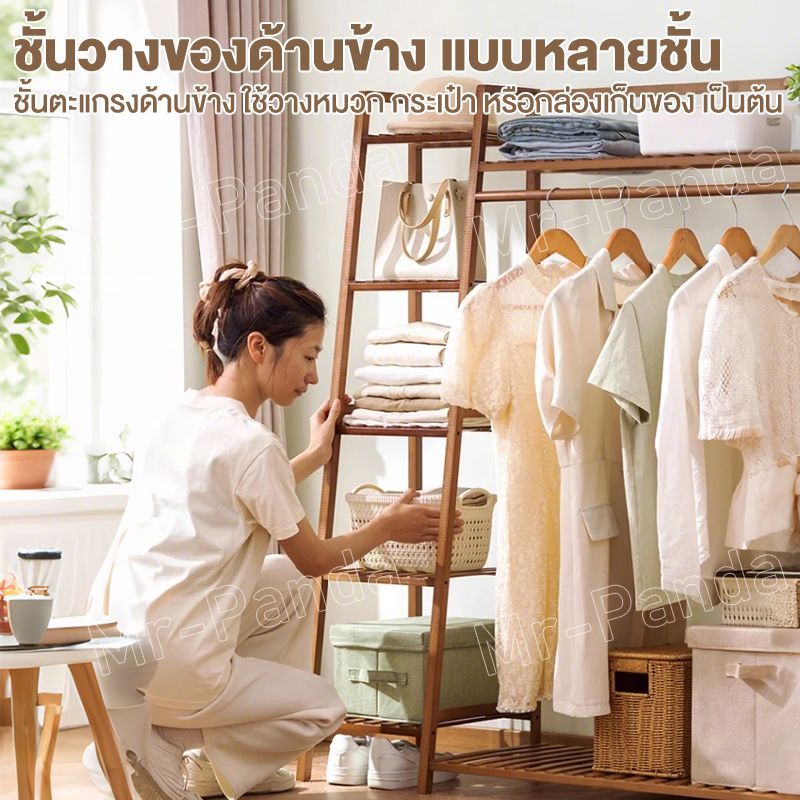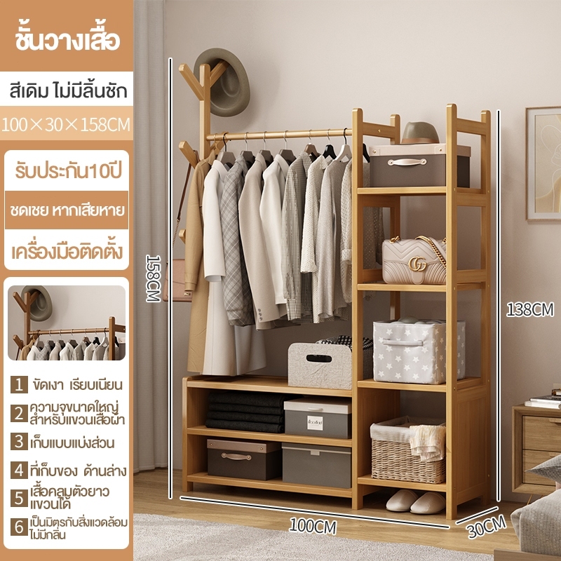 ราวแขวนเสื้อผ้า ราวแขวนผ้า ไม้ ตู้เสื้อผ้า ราวแขวนผ้า ราวตากผ้า ราวผ้า พร้อมชั้นวาง ผลิตภัณฑ์ไม้ไผ่ คุณภาพสูง แข็งแรง