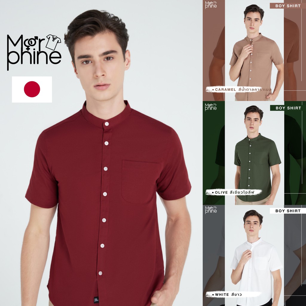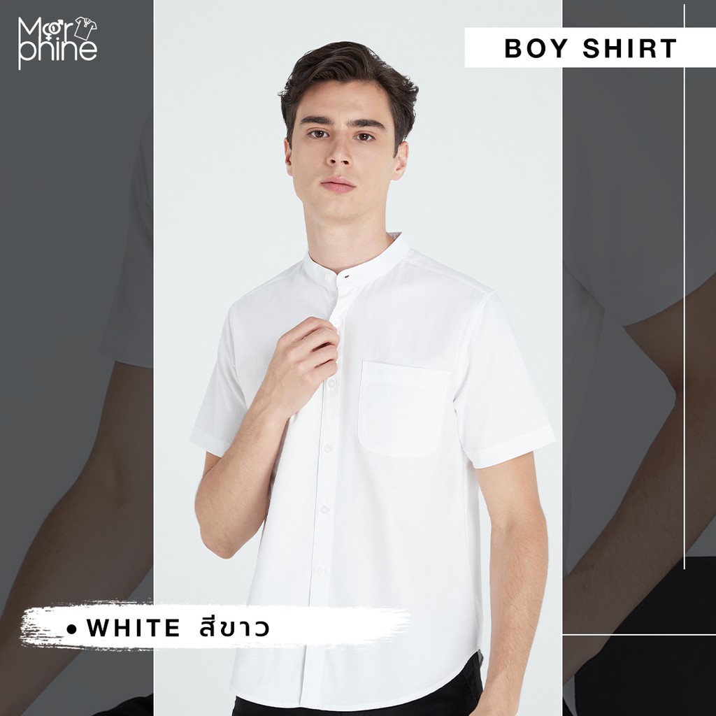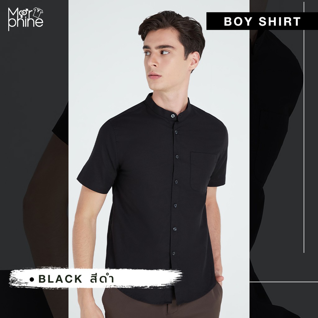 MORPHINE เสื้อเชิ้ตคอจีนแขนสั้น (10สี) - รุ่น Boy | เสื้อเชิ้ตผู้ชาย เสื้อเชิ้ตผู้หญิง เสื้อเชิ้ตสีขาว เสื้อเชิ้ตสีดำ