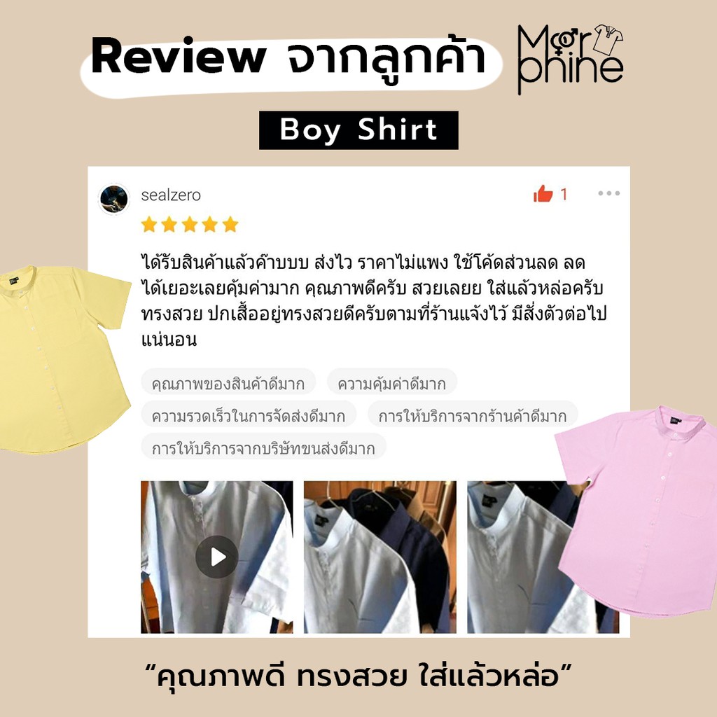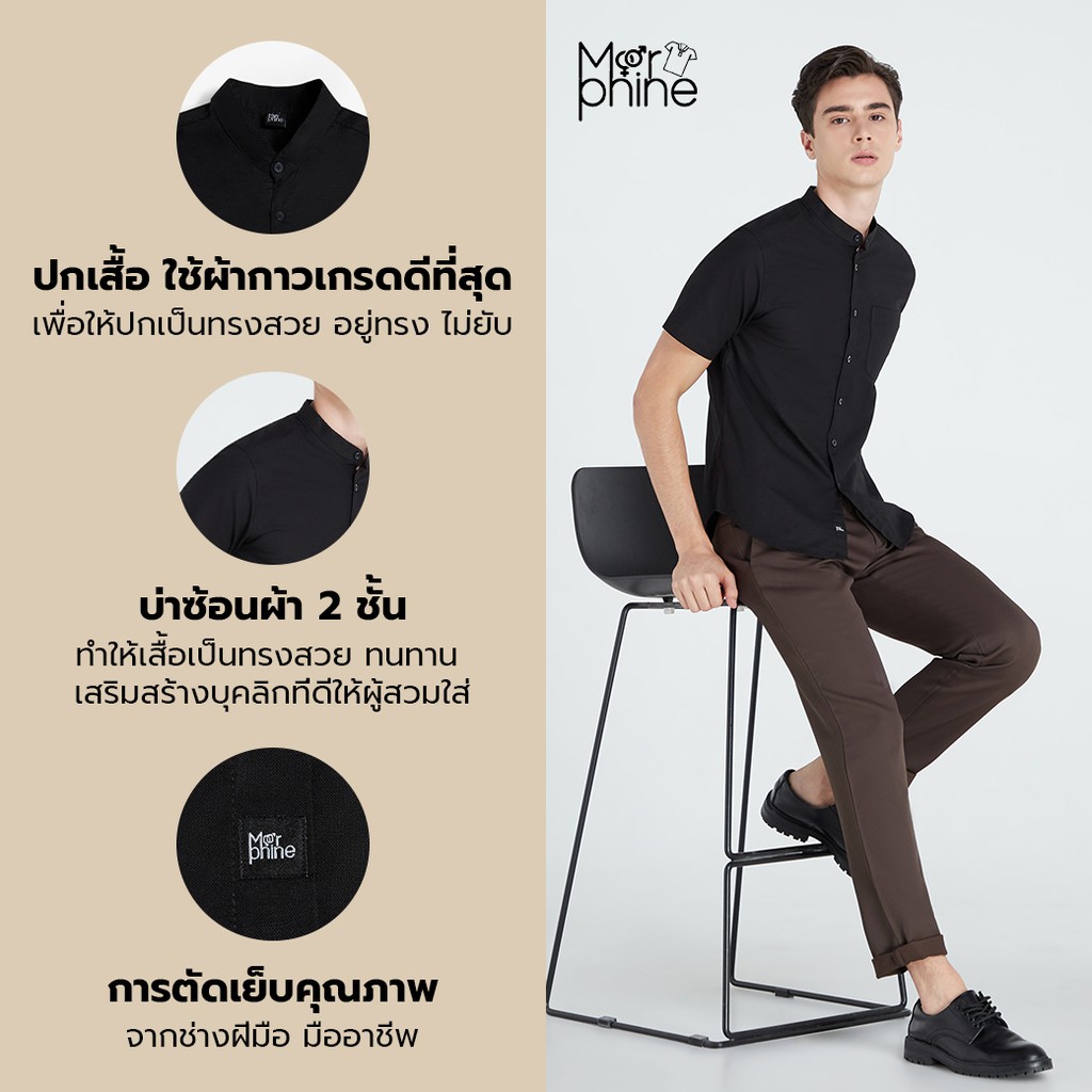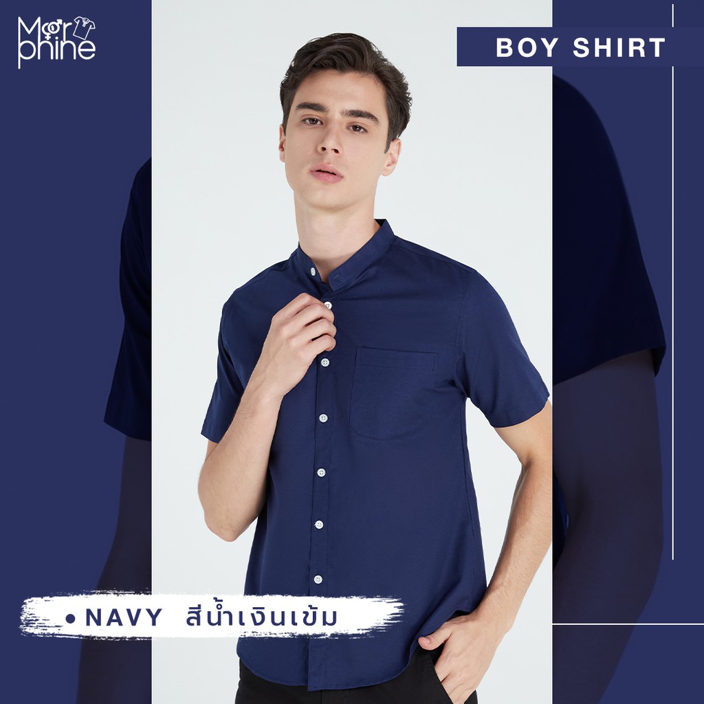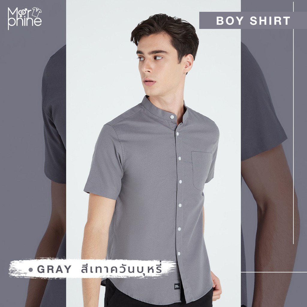 MORPHINE เสื้อเชิ้ตคอจีนแขนสั้น (10สี) - รุ่น Boy | เสื้อเชิ้ตผู้ชาย เสื้อเชิ้ตผู้หญิง เสื้อเชิ้ตสีขาว เสื้อเชิ้ตสีดำ