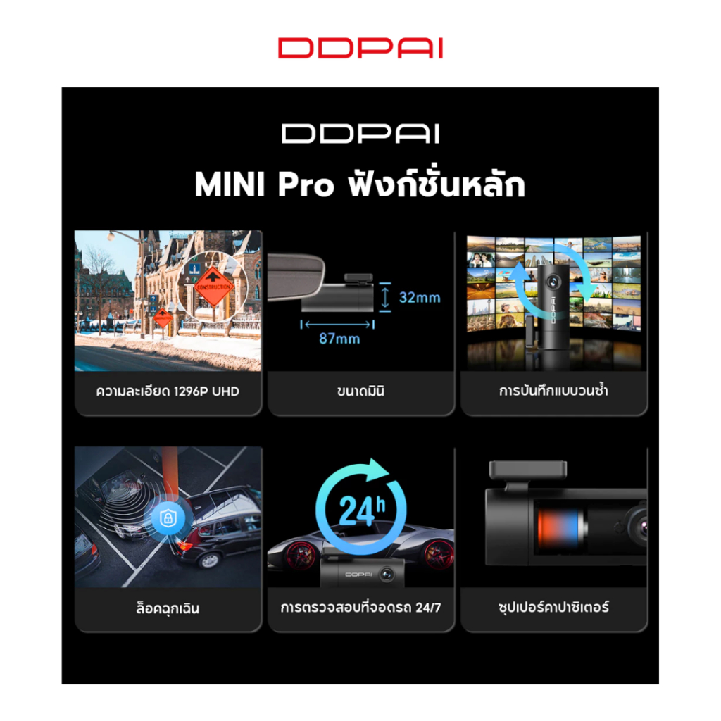 [ลด 200.- GUID200] DDPAI Mini Pro Dash Cam กล้องติดรถยนต์ รุ่นยอดฮิต 1080P HD wifi ความกว้าง 140 องศา, sub brand 70mai