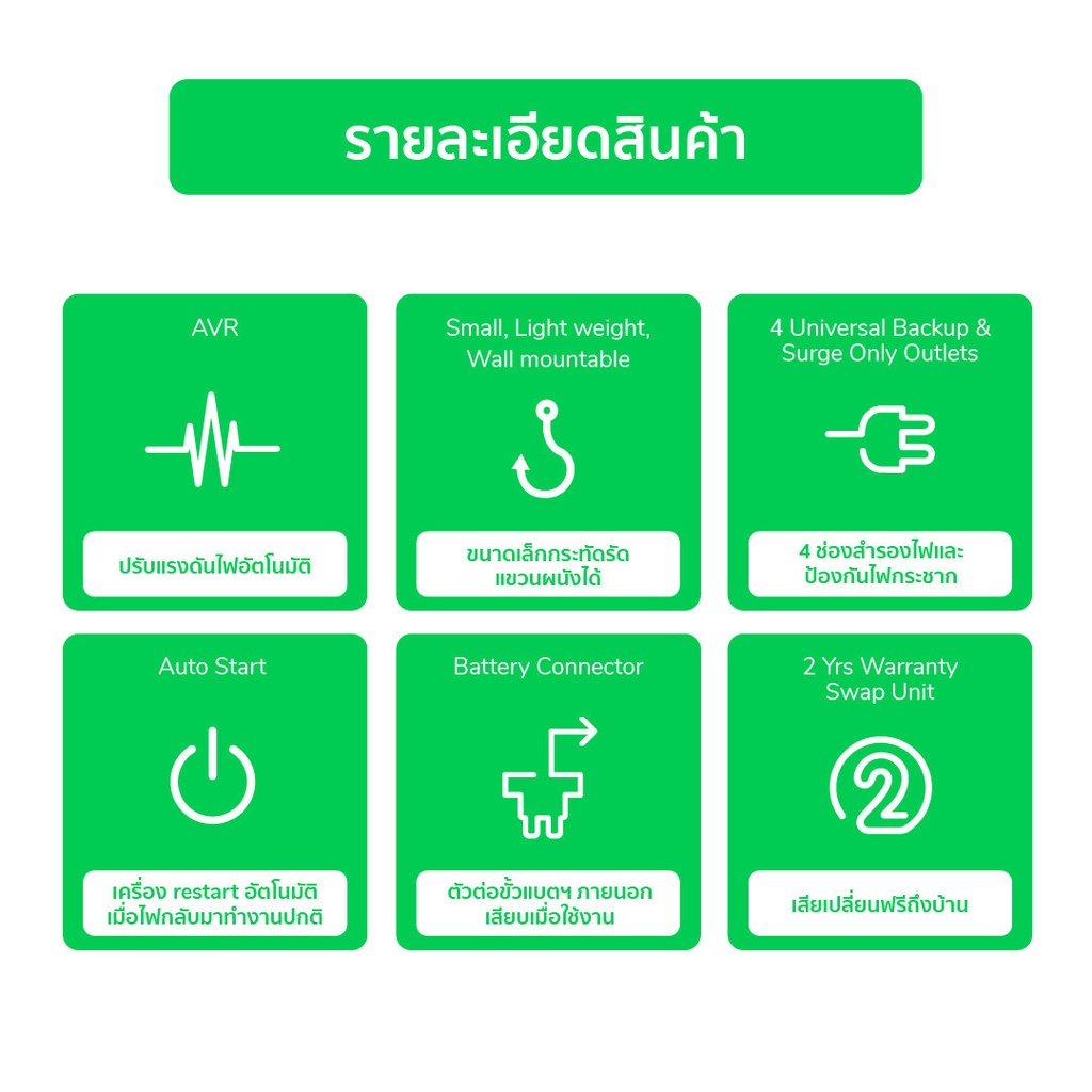 [รับประกัน 2 ปี จาก ศูนย์] APC UPS เครื่องสำรองไฟฟ้า (BV1000I-MST) 1000VA/600W