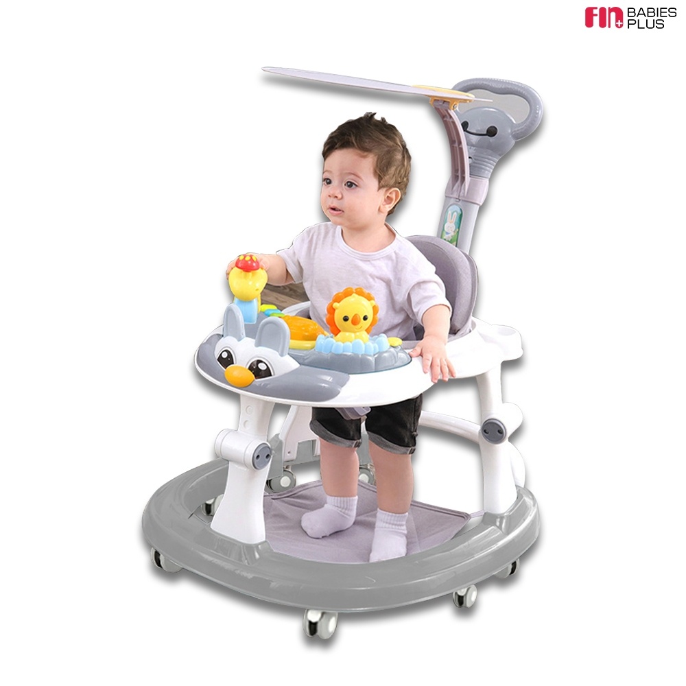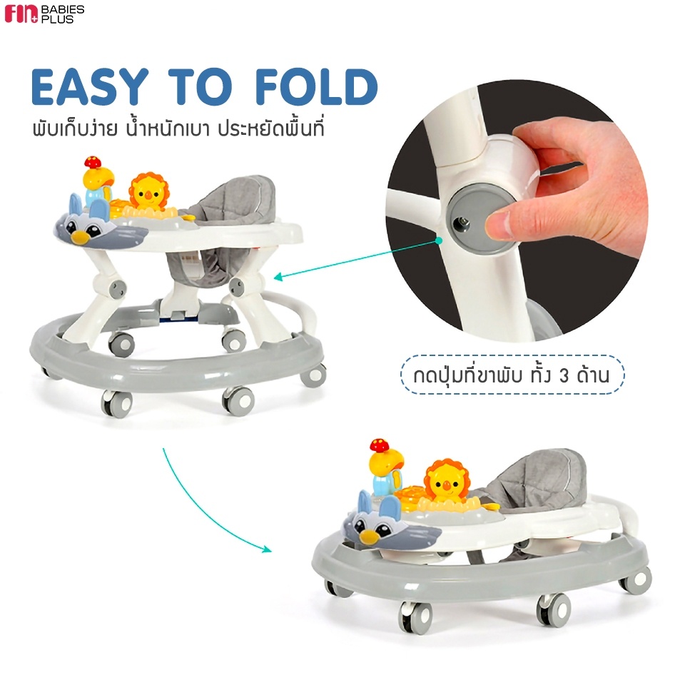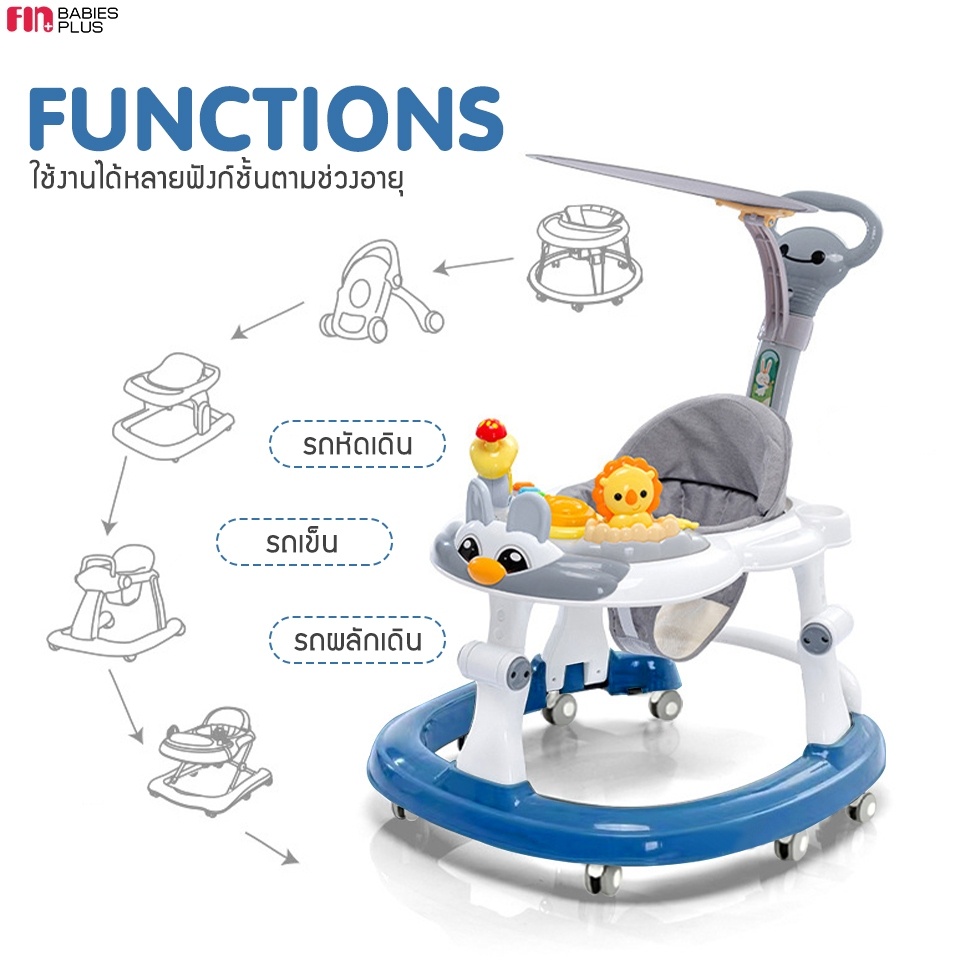 FIN รถหัดเดินหน้าสิงโตพร้อมถาดของเล่นมีเสียงมีไฟและที่เข็นที่บังแดด รุ่นCAR-678 ปรับความสูงได้ 2 ขั้นถาดถอดได้พับสะดวก