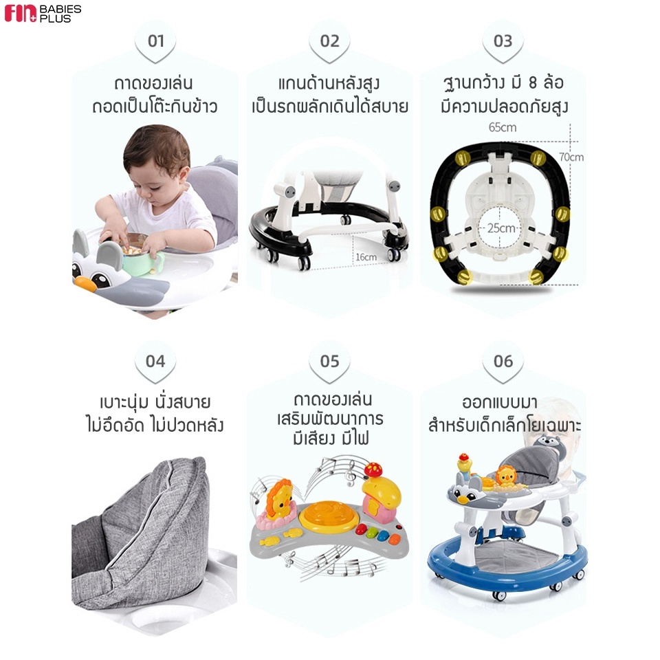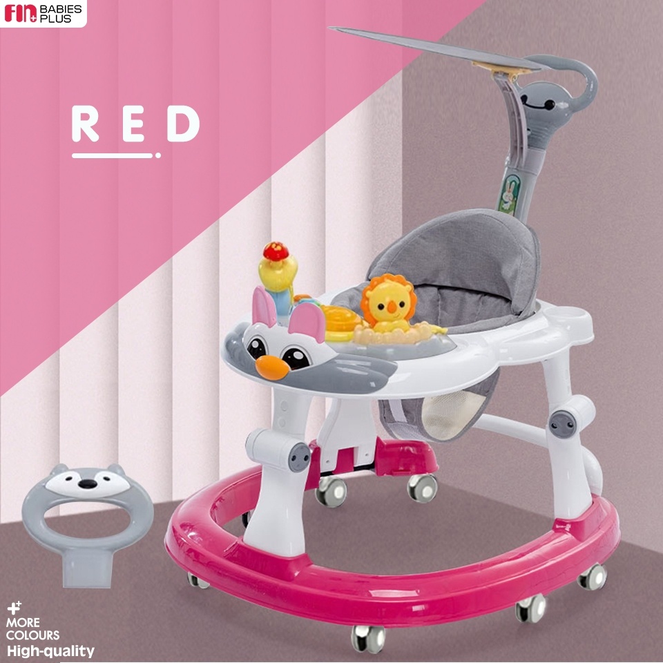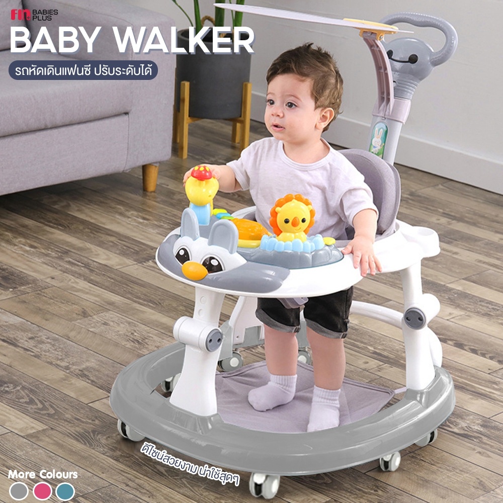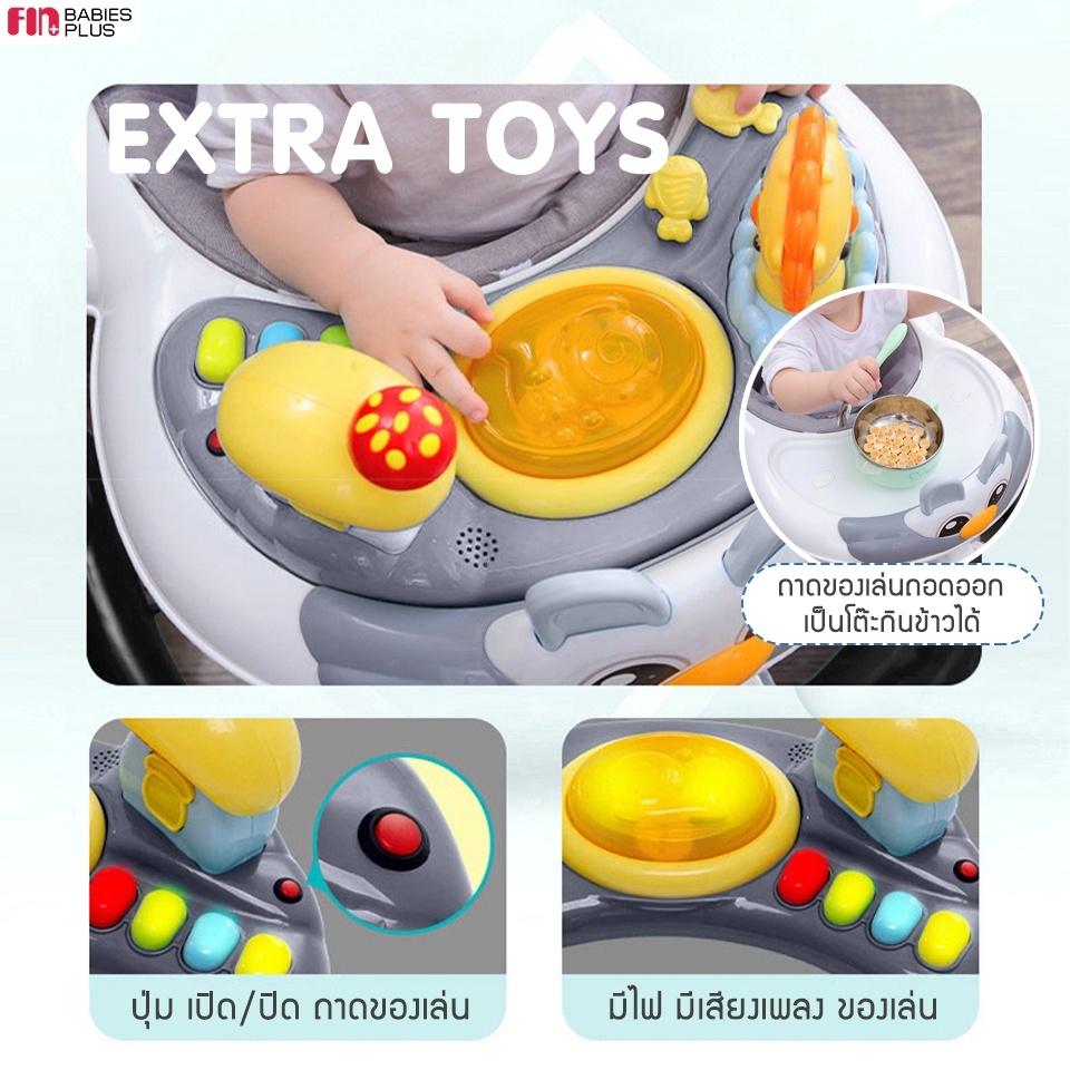 FIN รถหัดเดินหน้าสิงโตพร้อมถาดของเล่นมีเสียงมีไฟและที่เข็นที่บังแดด รุ่นCAR-678 ปรับความสูงได้ 2 ขั้นถาดถอดได้พับสะดวก