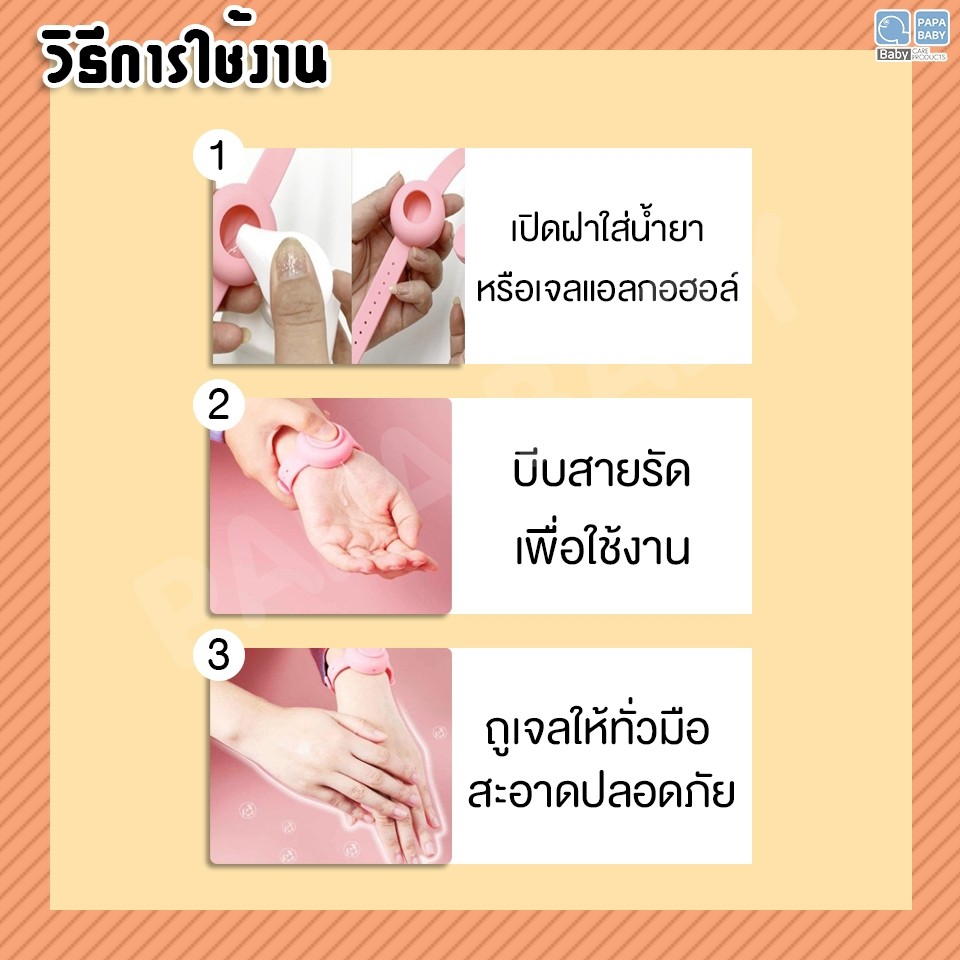 PAPA สายรัดข้อมือซิลิโคนเจล ทรงกลมรุ่นอัพเกรด สายรัดข้อมือใส่เจลล้างมือ รุ่น ST-90 พกพา เจลทำความสะอาดมือ ใส่เจลแอลกอฮอล