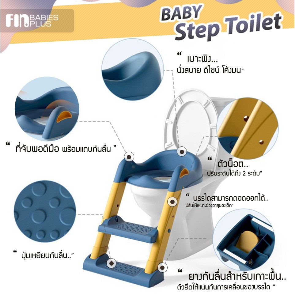 FIN บันไดชักโครก รุ่น PRF25 ฝารองชักโครก 2 IN 1 ฝึกลูกน้อยให้นั่งทำธุระได้ด้วยตัวเอง ปรับได้ 2 ระดับ วัสดุแข็งแรง ทนทาน