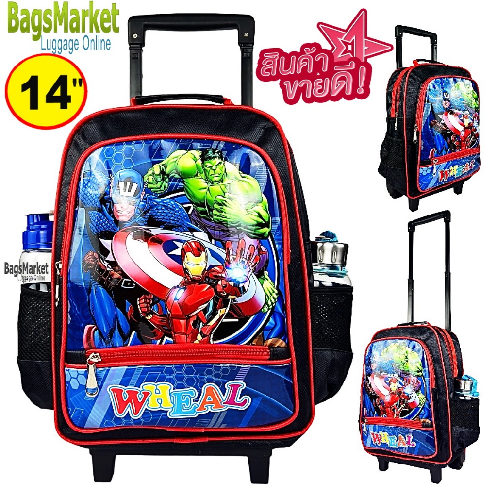 Kid's Luggage 14" (ขนาดกลาง-M) Wheal กระเป๋าเป้มีล้อลากสำหรับเด็ก กระเป๋านักเรียน ลายหมีแคร์แบร์ เจ้าหญิง สไปเดอร์แมน