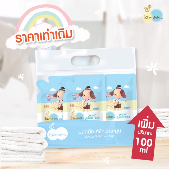 LAMOON Baby ได้ 3 ถุง น้ำยาซักผ้าออแกนิกละมุน ขนาด 700 ml.