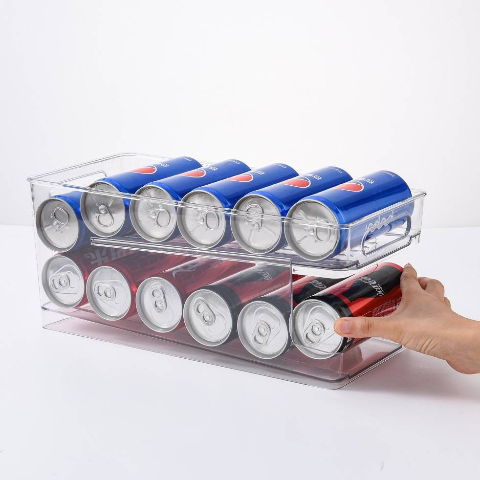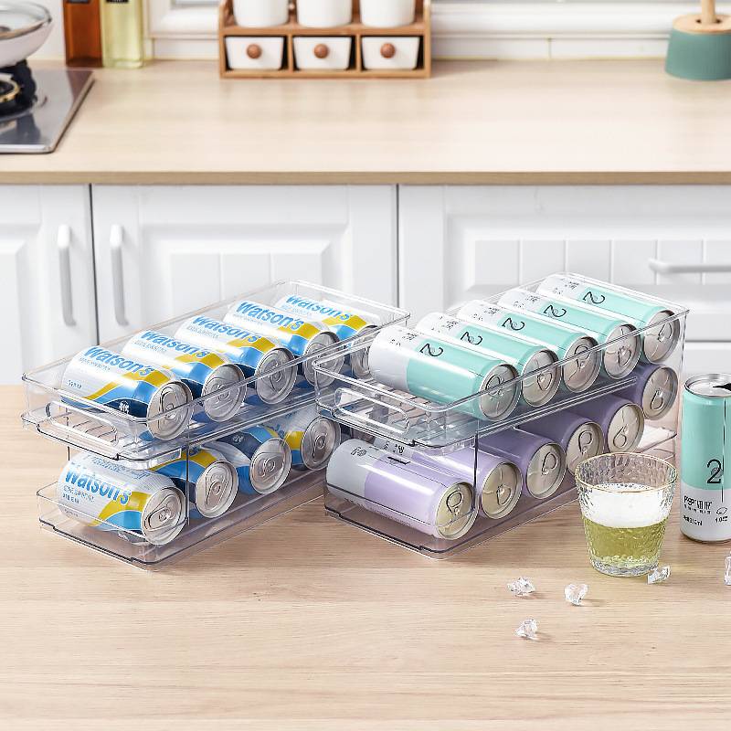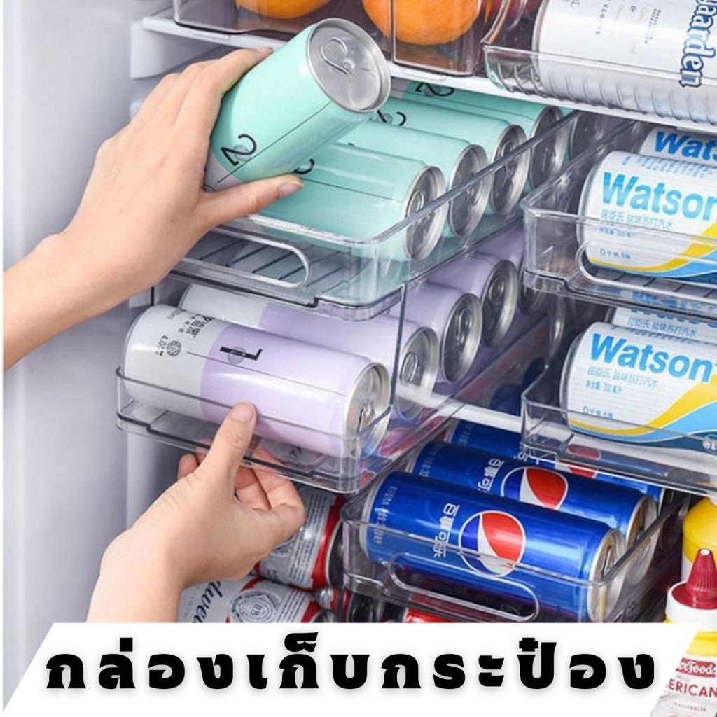 🍺พร้อมส่ง🍺ที่เก็บขวดน้ำอัดลมในตู้เย็น หยิบง่าย ช่วยจัดระเบียบในตู้เย็น ที่เก็บกระป๋อง ถาดใส่กระป๋องน้ำอัดลม