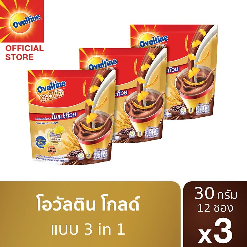 Ovaltine โอวัลติน 3อิน1 โกลด์ 30กรัม รุ่น 12 ซอง x 3 แพ็ค