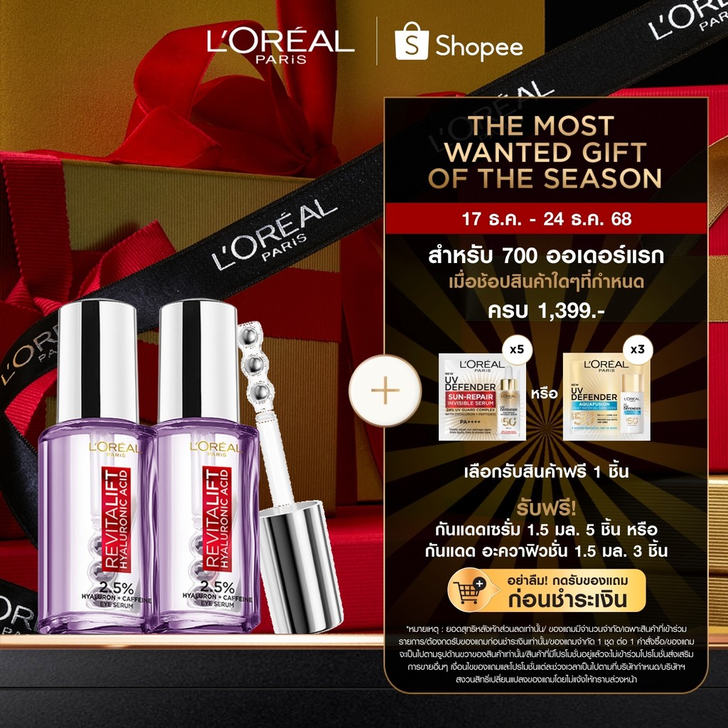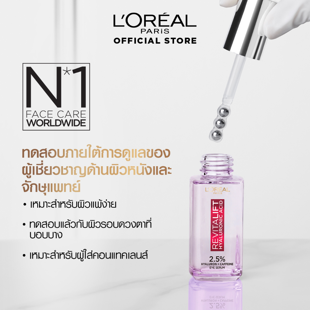 [แพ็กคู่] ลอรีอัล ปารีส L'Oréal Paris Revitalift Hyaluronic Acid Eye Serum 20ml x2 อายเซรั่มไฮยาบำรุงใต้ตา ผิวรอบดวงตา