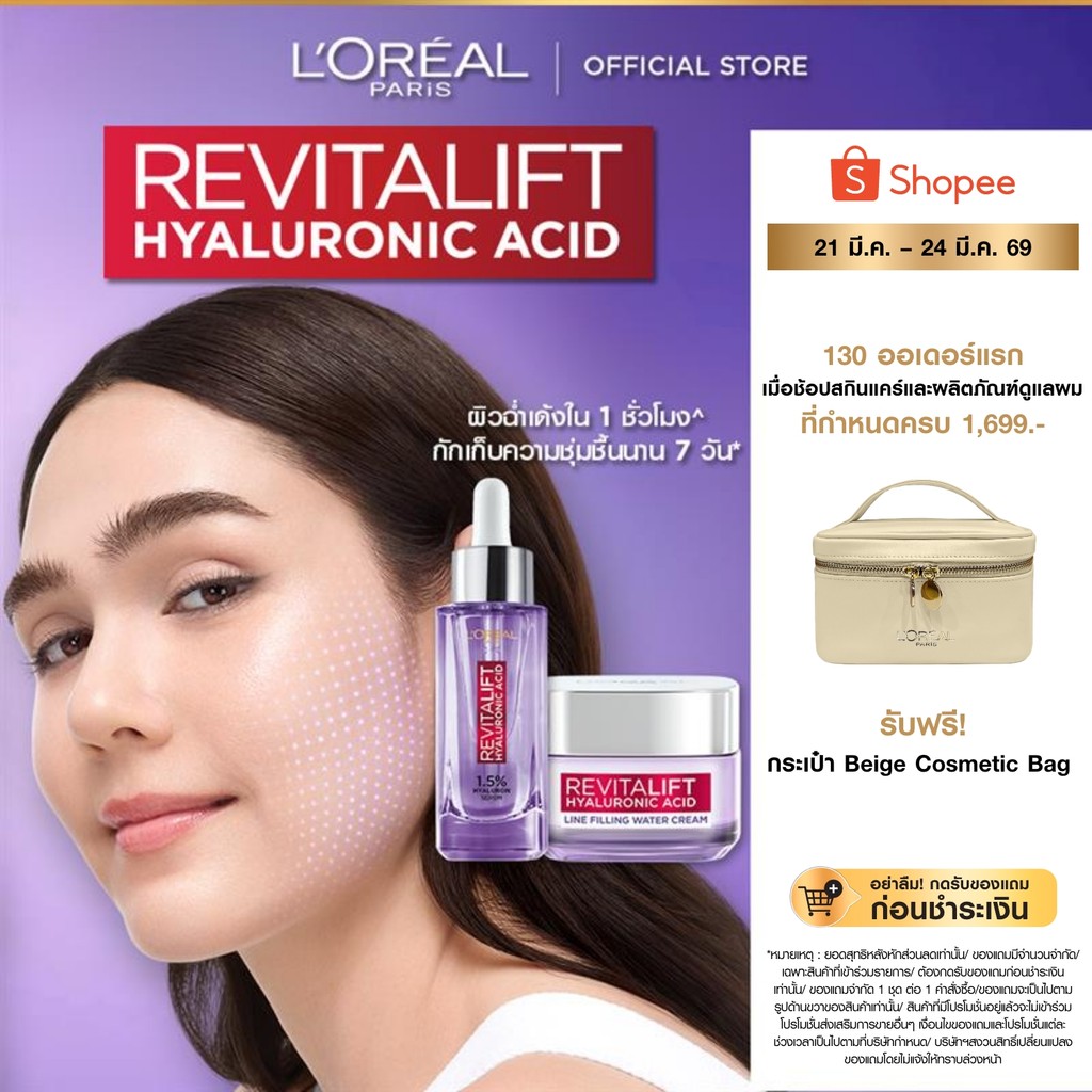 ลอรีอัล ปารีส L'Oreal Paris Revitalift Hyaluronic Acid Set ครีม50ml + เซรั่มไฮยา30ml บำรุงผิวชุ่มชื้น ลดเลือนริ้วรอย