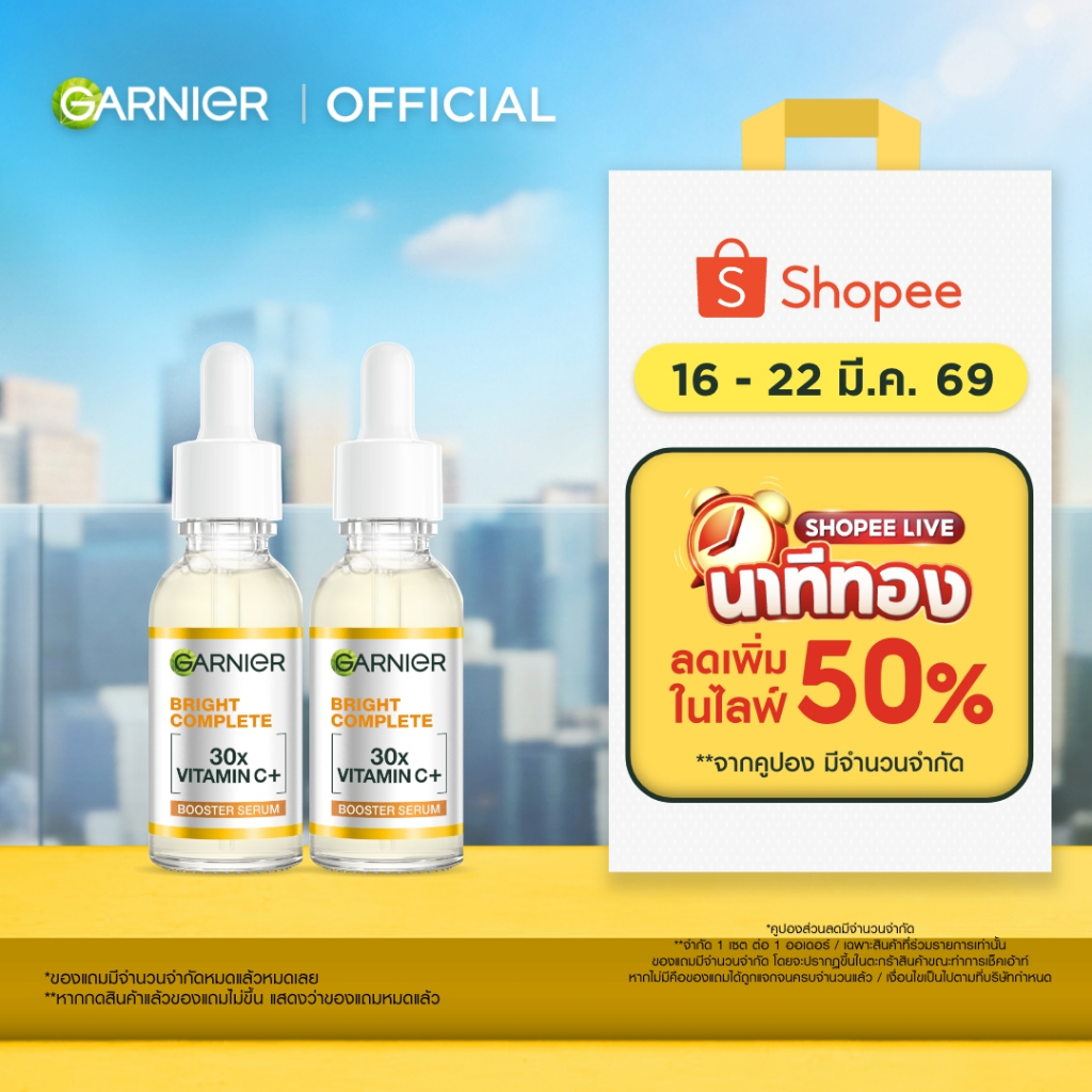 [แพ็คคู่สุดคุ้ม] การ์นิเย่ ไบรท์ คอมพลีท วิตามินซี บูสเตอร์ เซรั่มลดจุด 30มลX2 GARNIER BOOSTER SERUM 30ML X2 เซรั่มหน้าใ